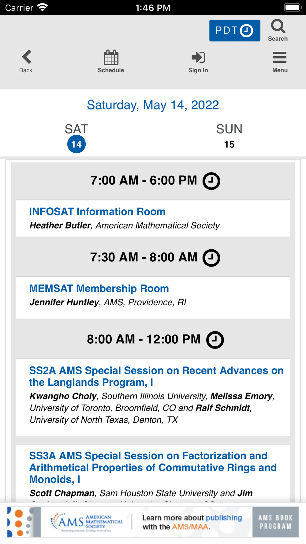 The AMS 2022 Spring Western Sectional Meeting will be held virtually May 14-15, 2022. Login to view Sessions and Papers saved as favorites. View schedules and people. Attendees will now be able to facilitate their experience at the meeting using the mobile app.