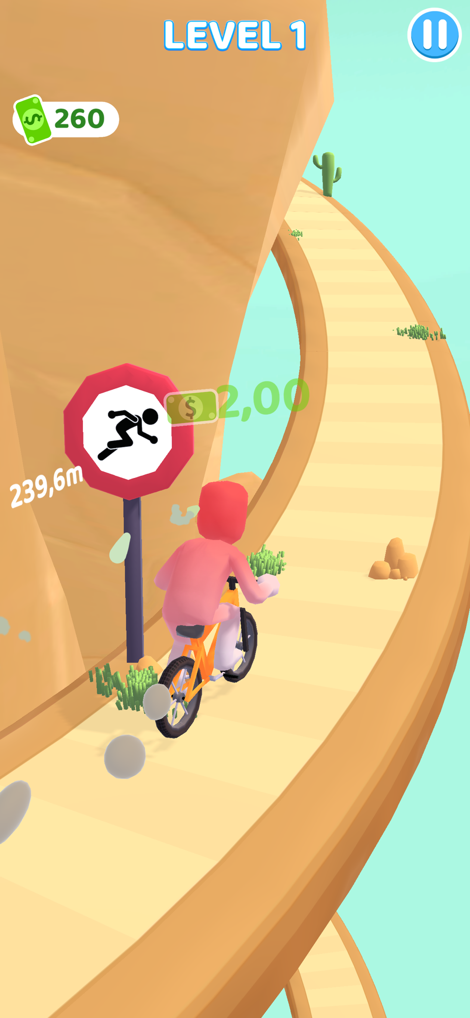 Do you like hiking or riding a bike? Which one? If you are ready lets begin! Pick of the right thing if you go to forward. That's the point. You need to bike if you going to down hill. Same goes for vice versa. You going to uphill so you should just walk. It's happening! You getting tired. Next time upgrade your boost options.