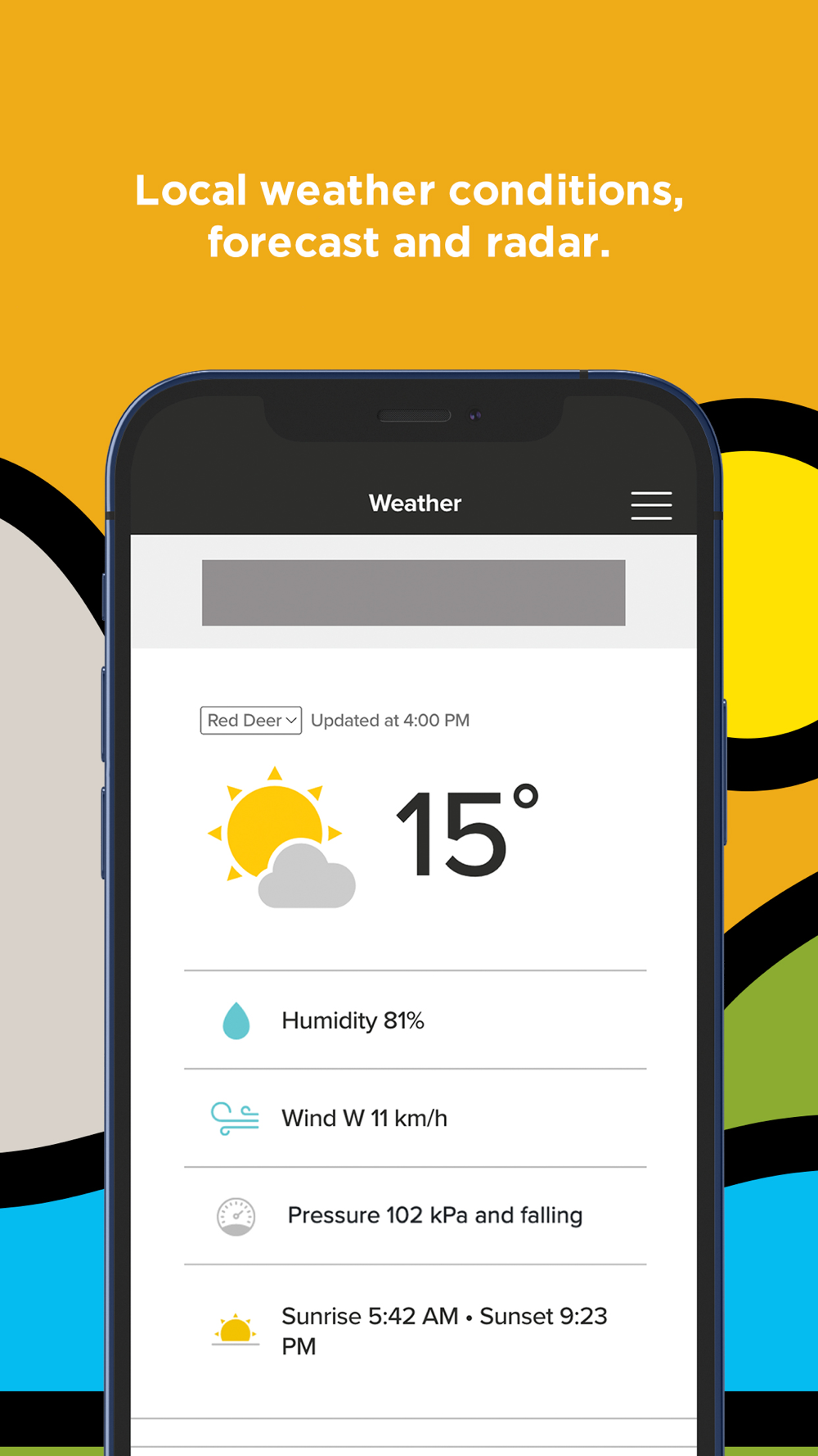 - Live local weather conditions, including hourly and 7-day forecasts and radar maps from Environment Canada