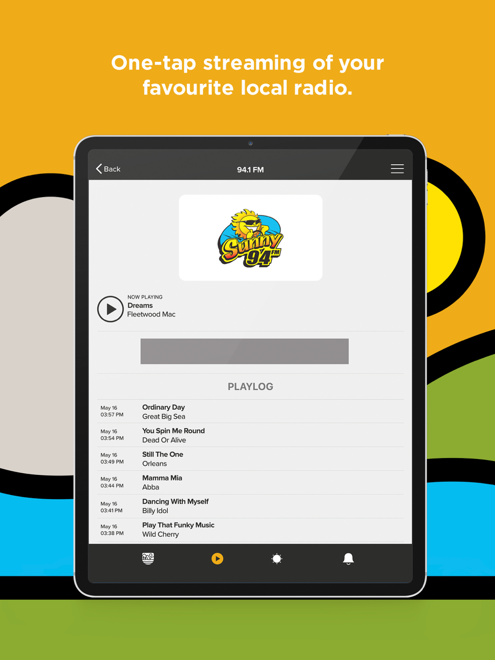 - Streaming: Listen to your favourite local radio station, Sunny 94, and look up recently played songs