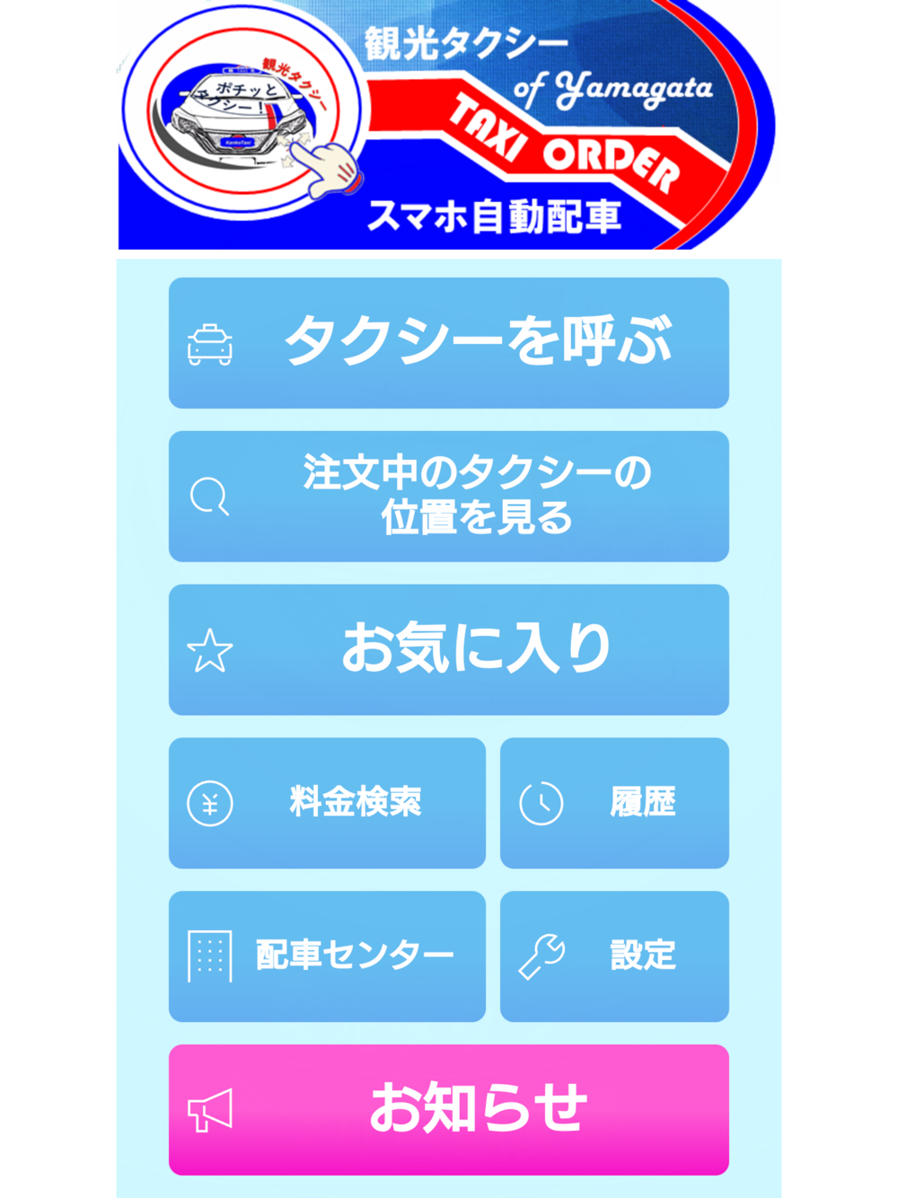 スマートフォンアプリ「観光タクシー株式会社 スマホ配車」はお手元のスマートフォンで