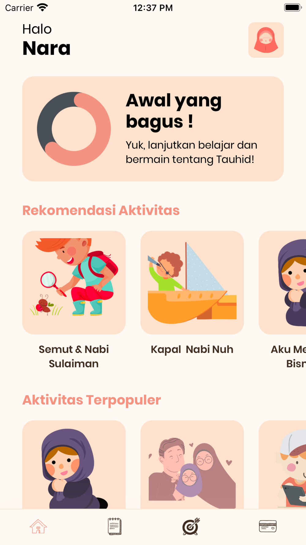 Panduan implementasi sistem pendidikan anak di rumah menggunakan metode quran based play dan learning by experience dengan menyediakan panduan, paket belajar, dan permaian interaktif di setiap tahap perkembangan anak.