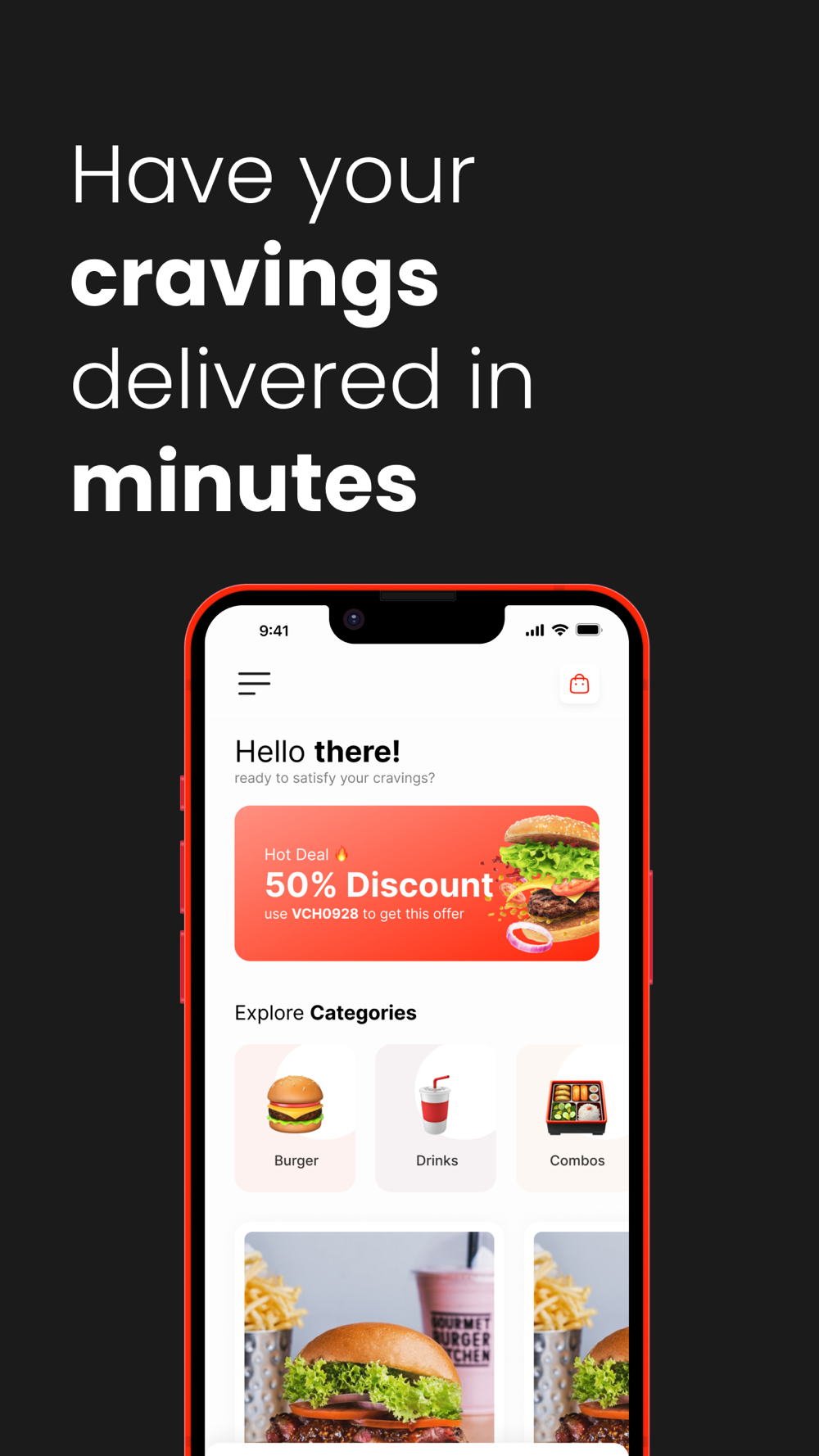 In one click, get your Favorite tasty burgers custom-made and delivered to you from the comfort of your home, school, or workplace, Safe and on time.