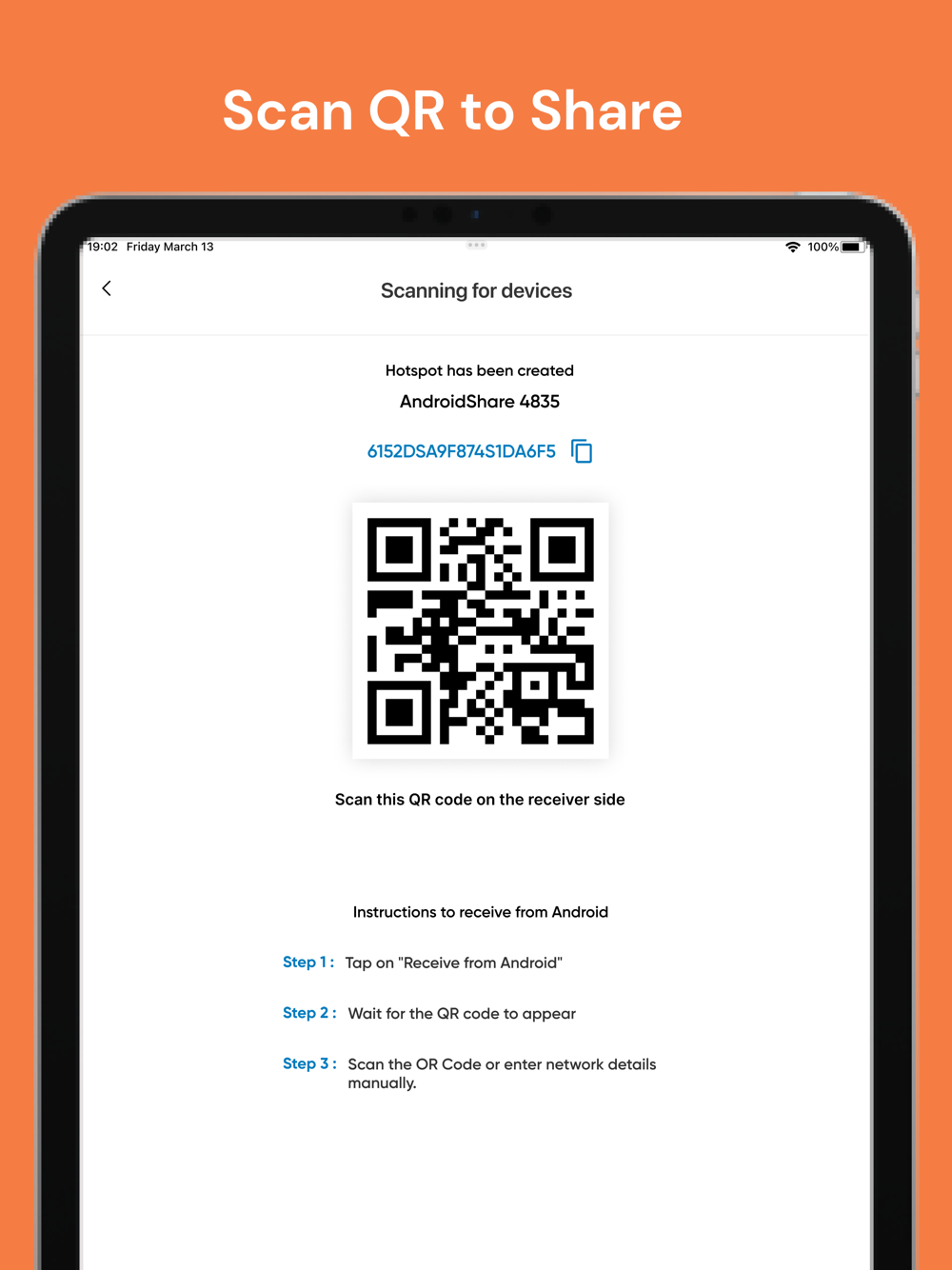 4. To start the transfer by creating a connection, the receiver must scan the QR code.