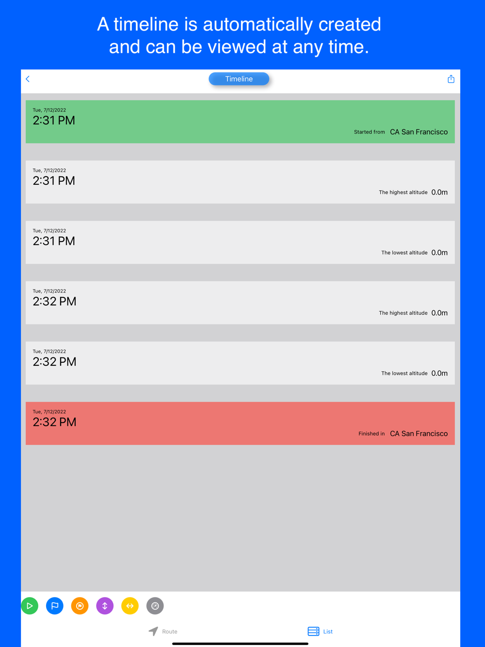 If you have a superb view point or a delicious restaurant where you can see beautiful scenery along the way, tap the comment button and enter a comment, and you can see at a glance what was the superb view point when you look back that evening.