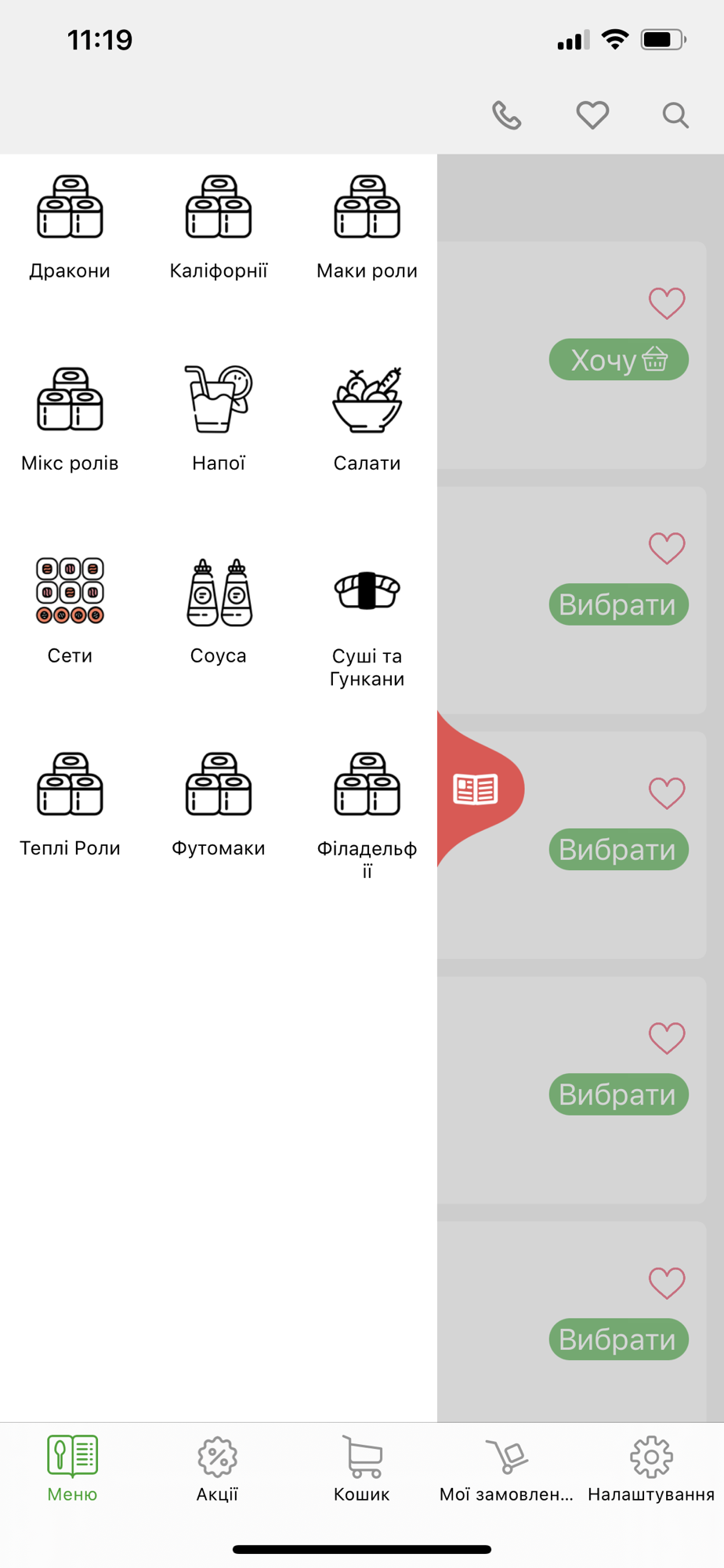 З додатком Avocado_sushi замовляти cети, роли легко, оскільки в додатку доступні детальні описи і фотографії страв