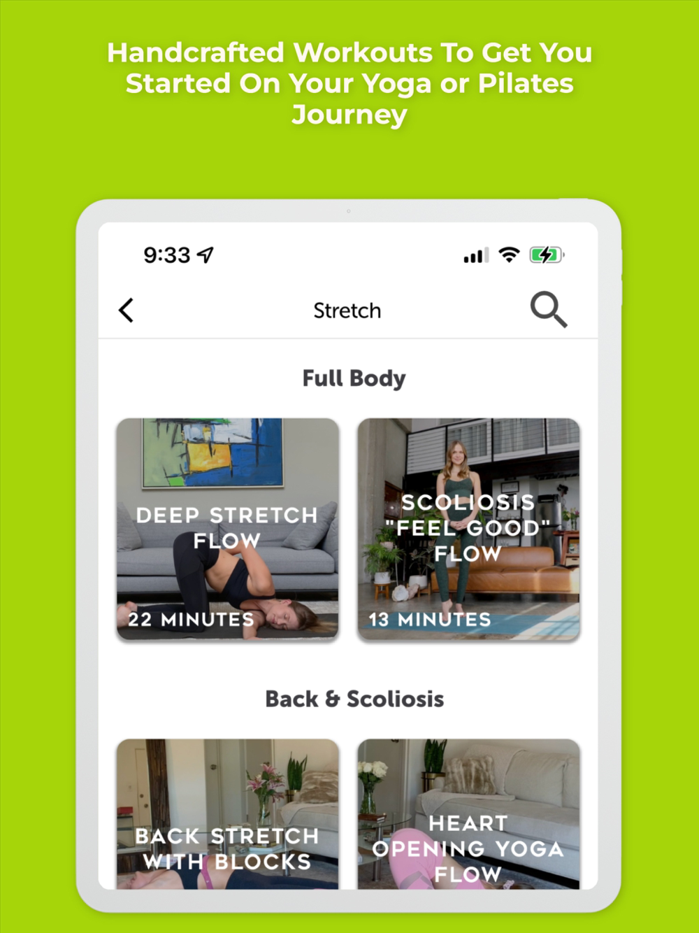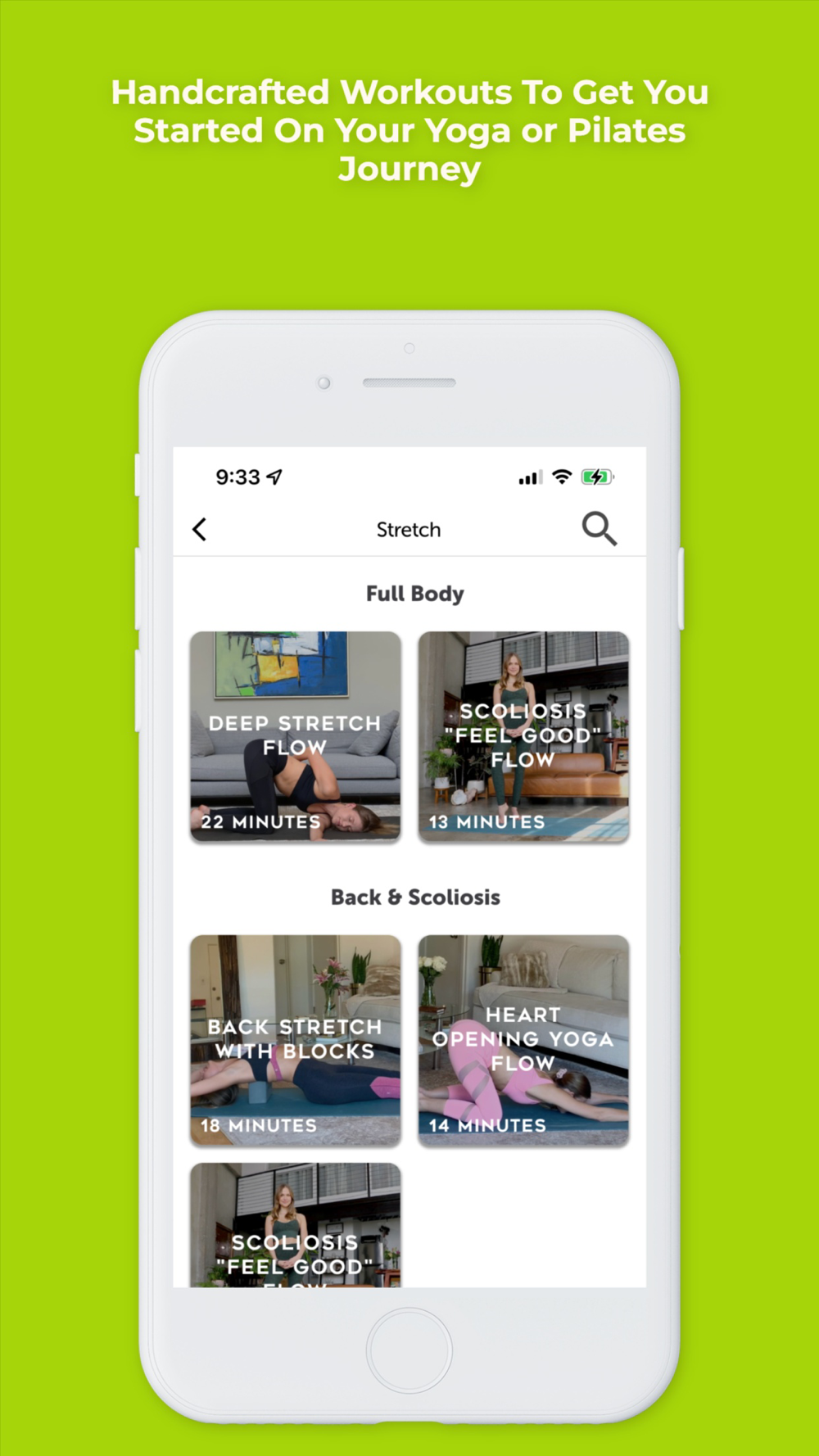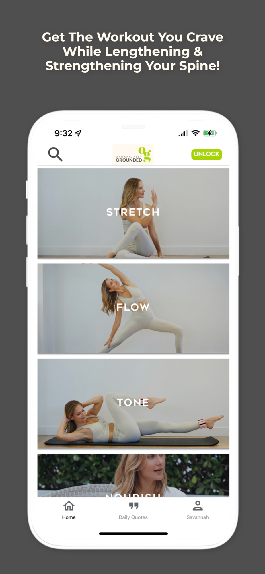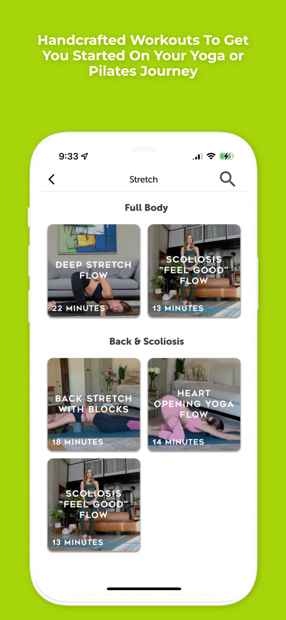 Lengthen and Strengthen your spine and body through OG's Stretch, Flow, and Tone series. All the the flows and workouts are focused on not only improving your posture but also toning your body with modifications in mind for anyone with back pain or Scoliosis.