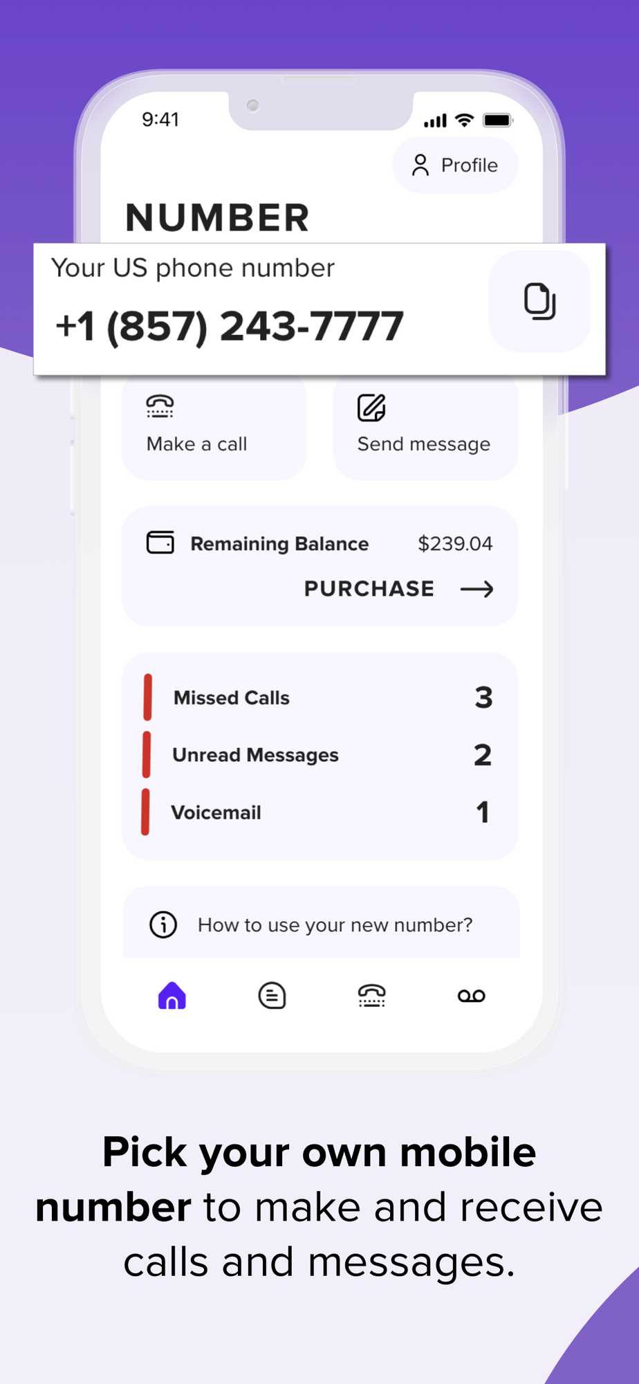-Receive a dedicated mobile number to make and receive calls & messages, instantly.