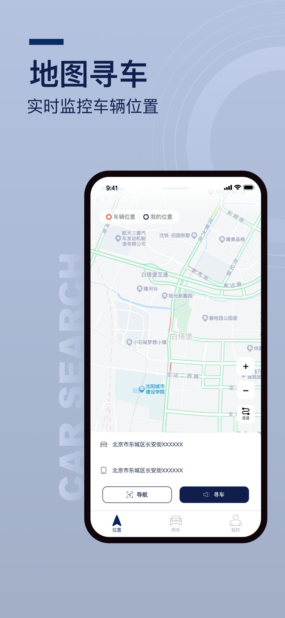 【位置】:车主及时掌握车辆位置信息,查看车辆行驶轨迹