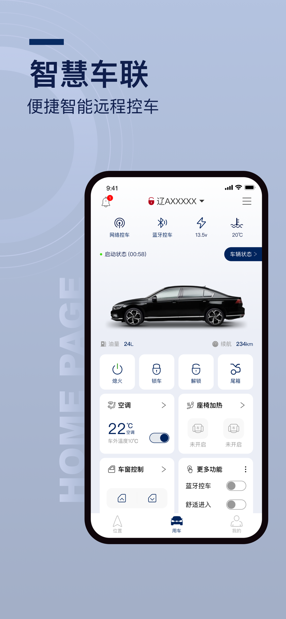 【用车】:远程网络控车/手机蓝牙控车,控车功能一手掌握