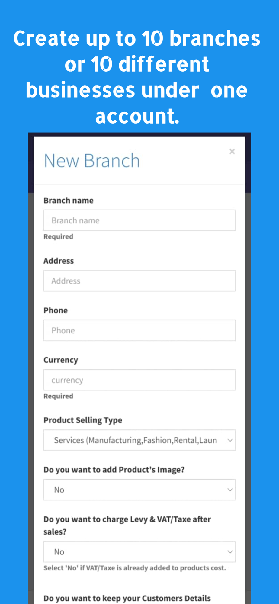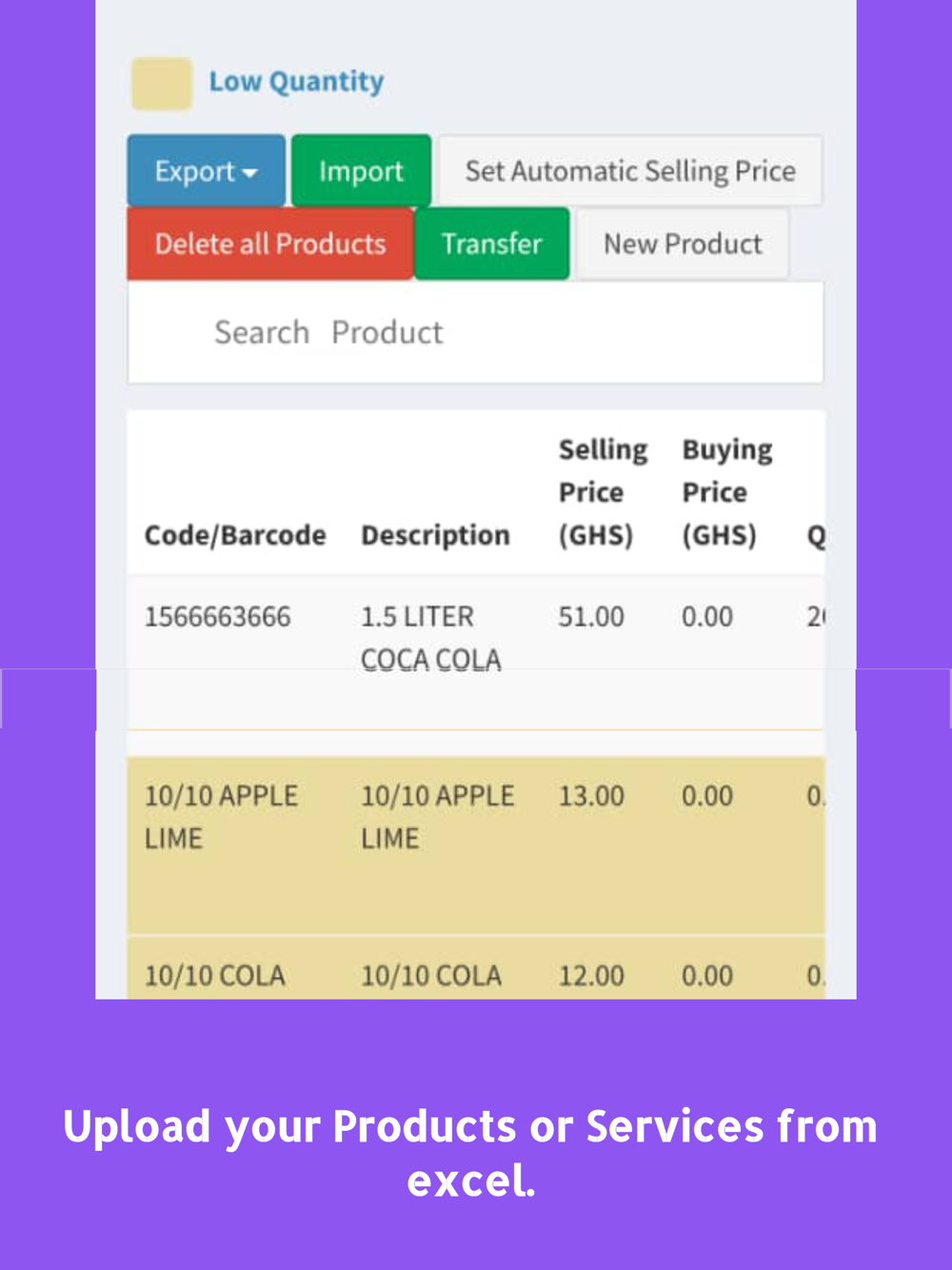As a service business it helps manage your services fees , your sales , productions department and captures your expenses. You can upload your products from excel and start sales .