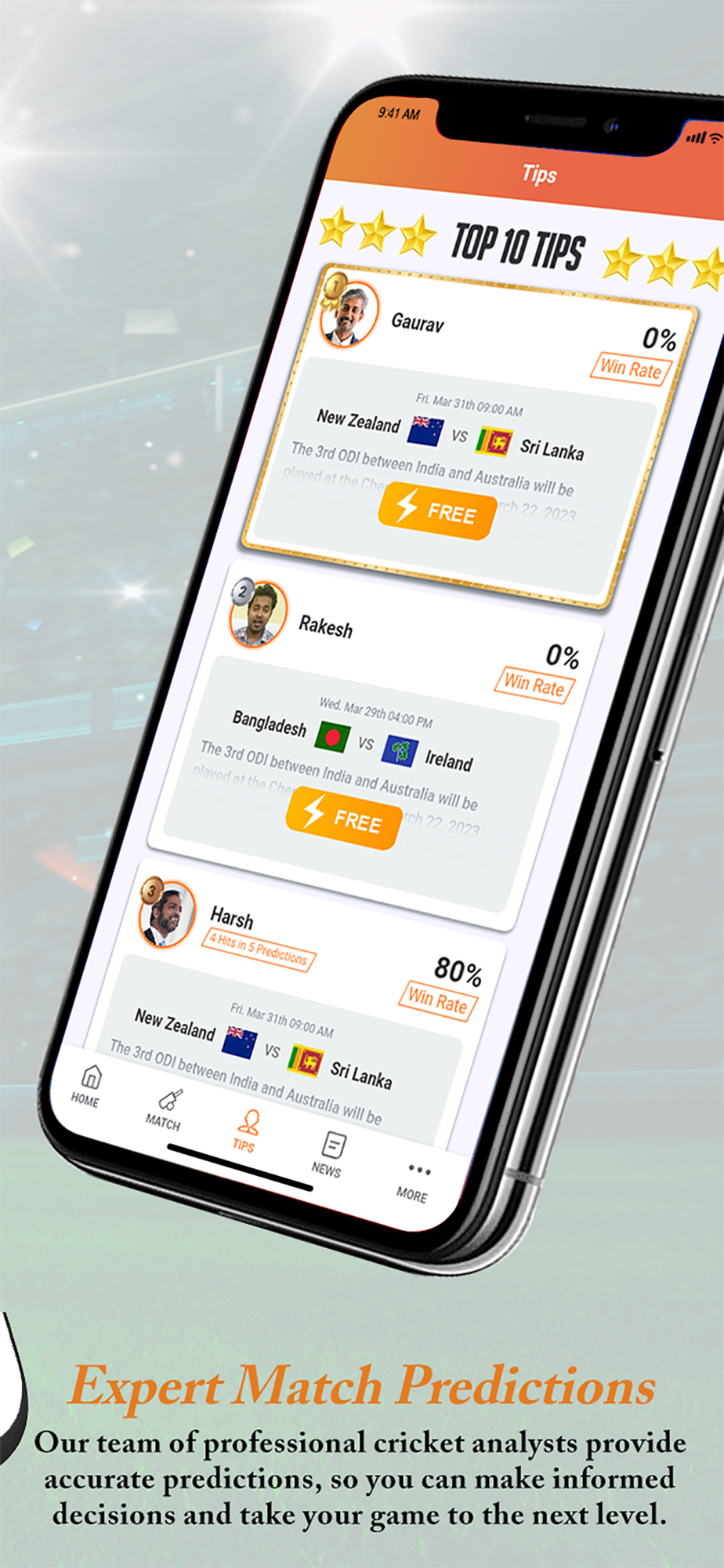 Pick your favorite teams and players to keep tabs on their stats. Join fellow fans for a lively discussion as you follow all the action. With animation, live streaming, and expert predictions soon to come, AllCric is just getting started.