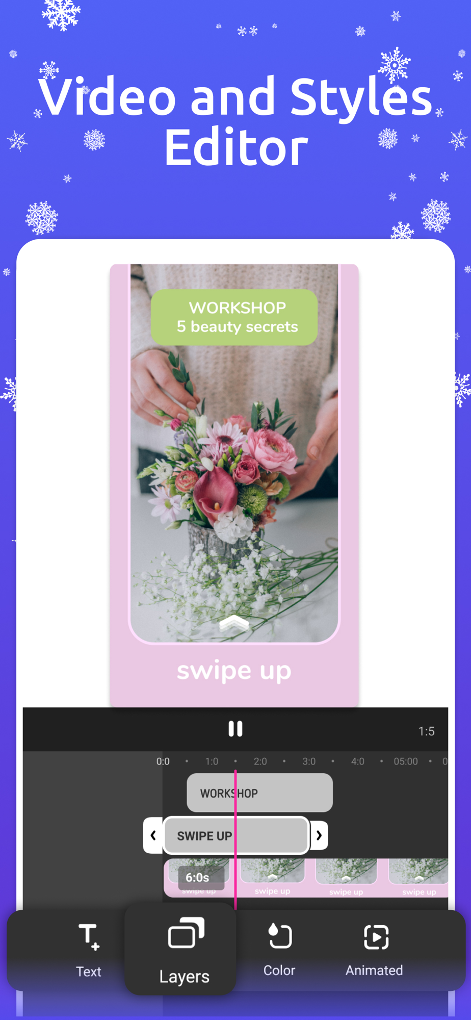 - Add text with animation from categories: Title, Caption, Minimal