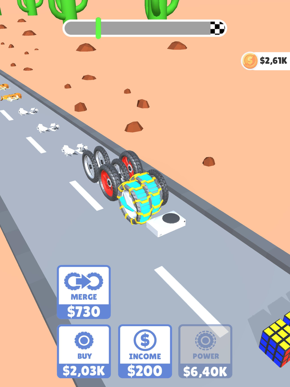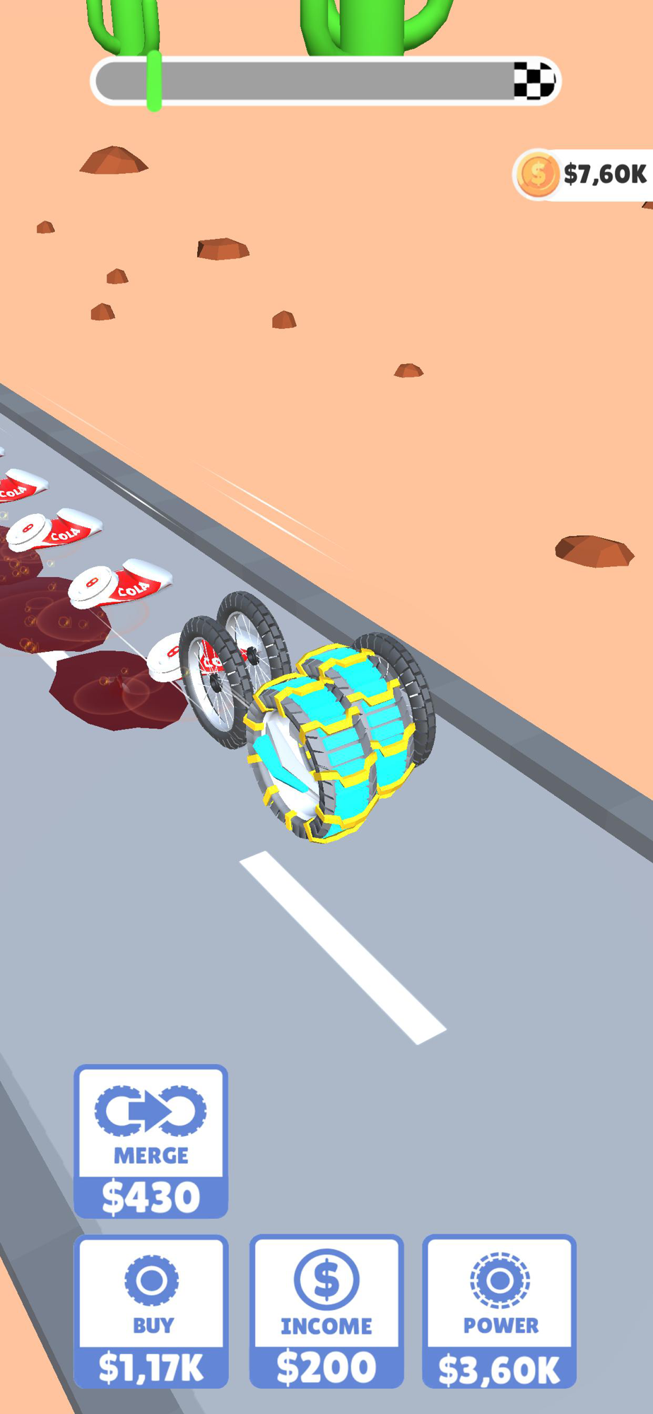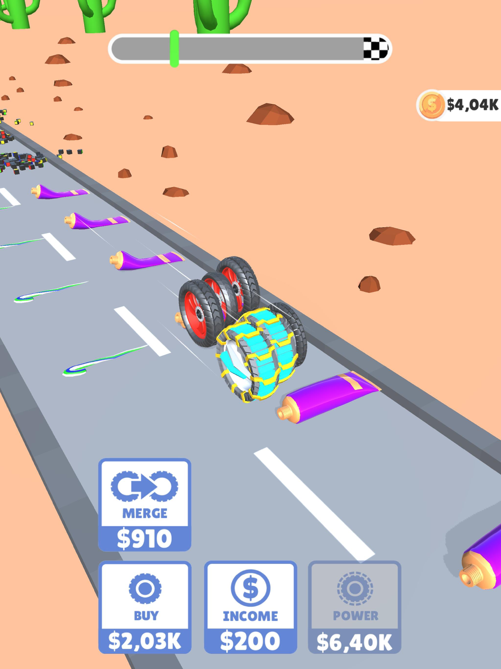 Power up and merge the wheels, destroy everything on your path!