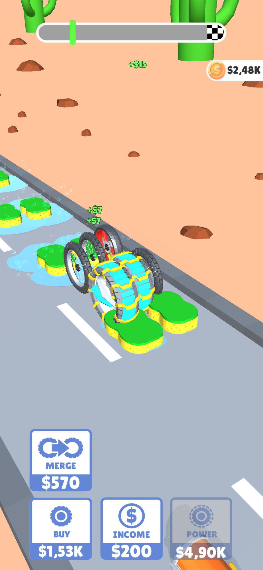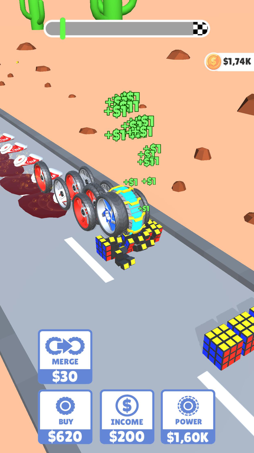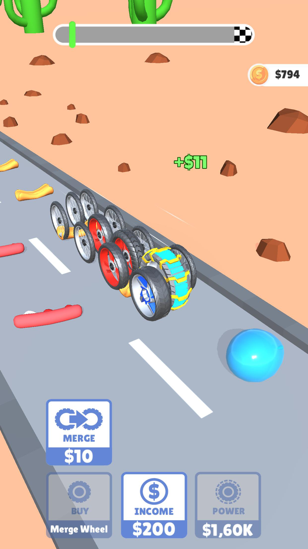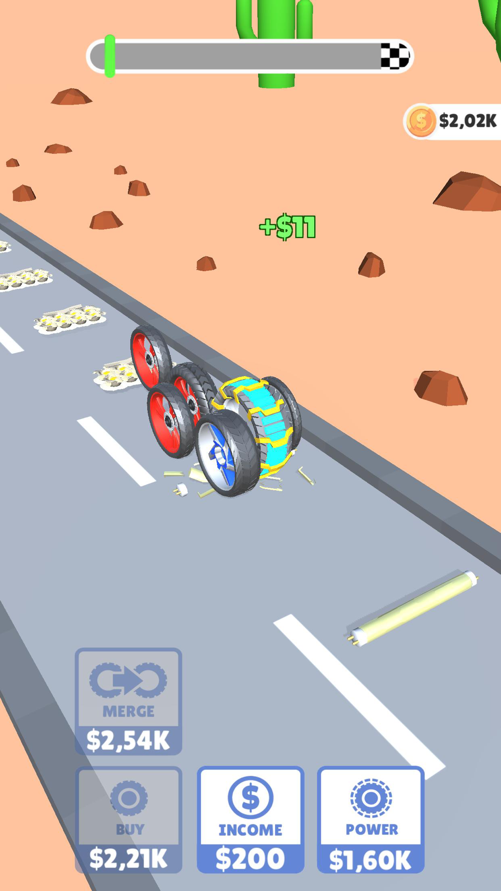 Power up and merge the wheels, destroy everything on your path!