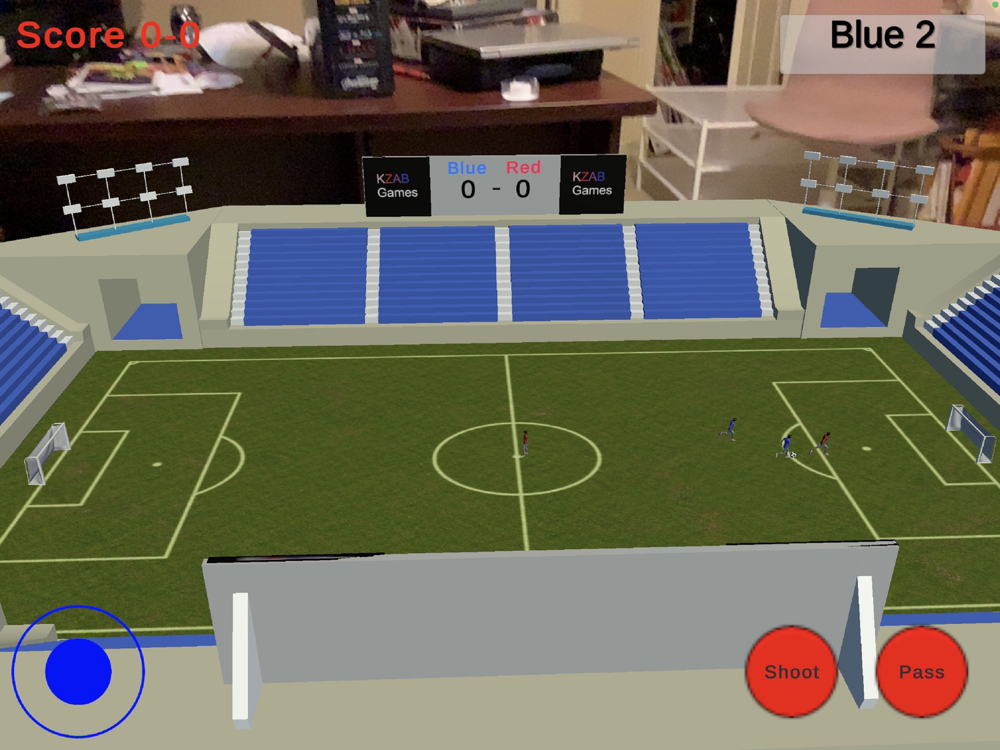 This is a simple 2 on 2 soccer game that showcases the future of AR technology. Open up the game and a stadium pops up in front of you. This stadium appears to be floating in your room a few feet forward and you can walk around or inside of the stadium while controlling your player and playing the game. The score pops up on the screen as well as at the top of the stadium.