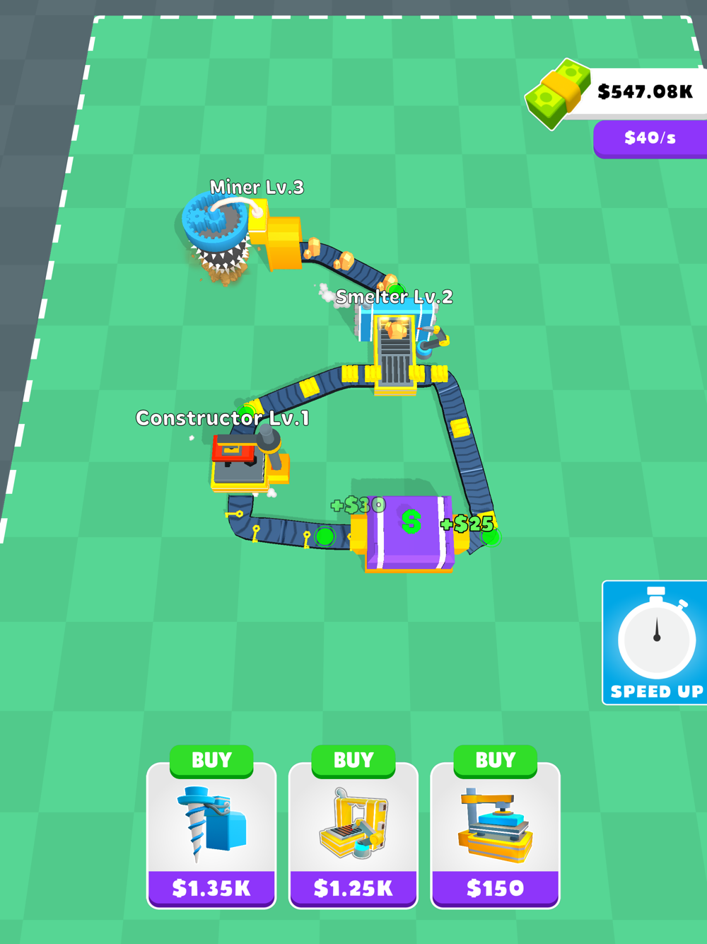 Buy Smelters and connect them with Miners to get more,Buy Constructor and connect them with Smelters to get more and more!