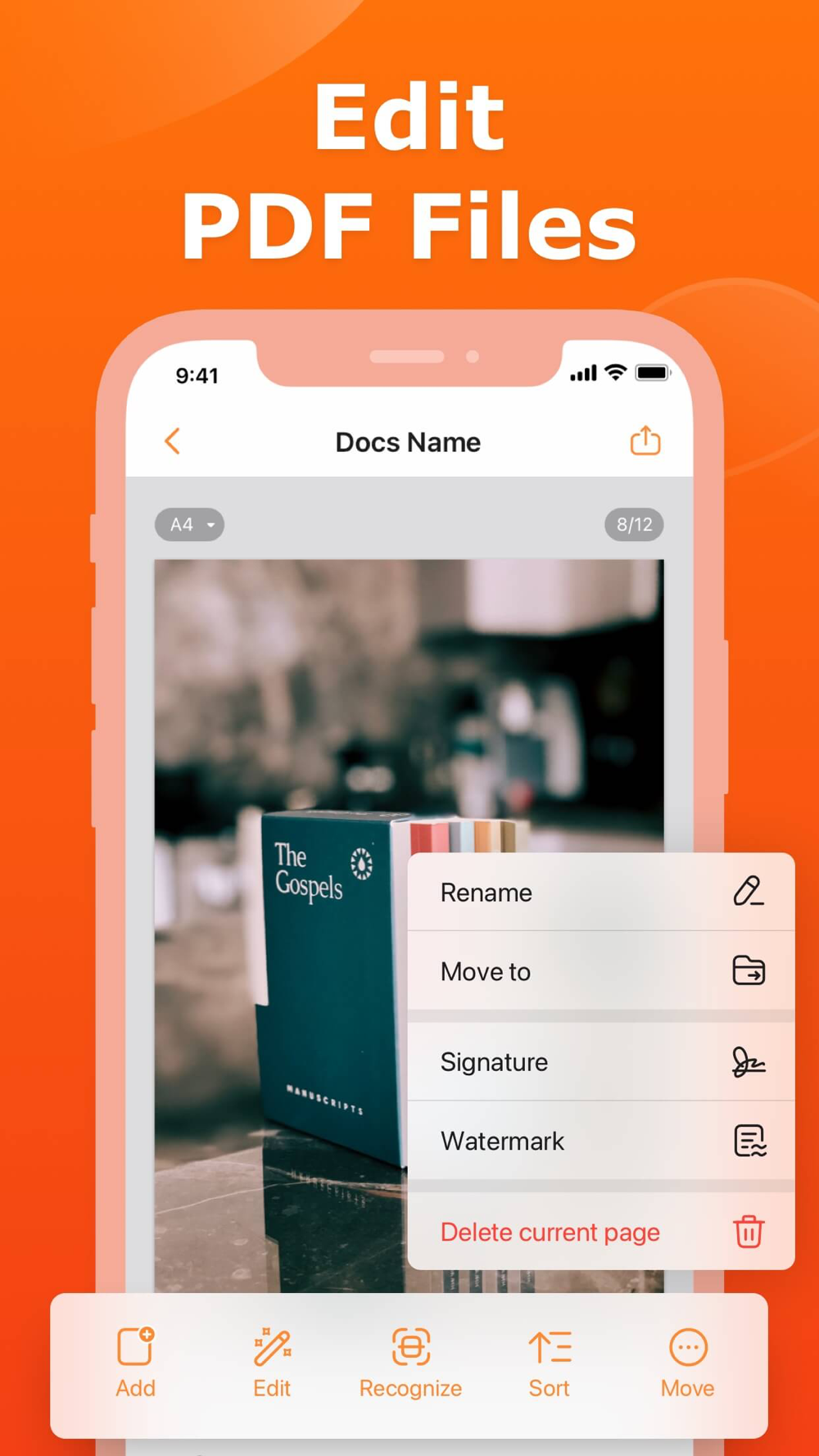 - Edit documents: Move, rotate, add or delete pages