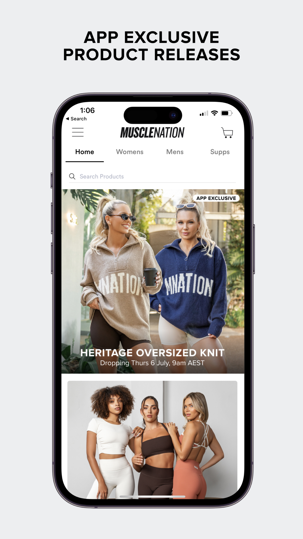 The app you’ve been waiting for is here. The Muscle Nation app offers a wide range of fitness clothing, accessories and supplements for both men and women. Whether you're looking for the latest workout gear, stylish athleisure wear, or high-quality supplements to support your fitness goals, you'll find it all on the Muscle Nation app. With exclusive app-only collections and instant communication, you'll always be in the know about new drops and deals. Plus, with secure and safe payments, you can shop with confidence. Download the Muscle Nation app now and elevate your fitness style with our wide range of clothing, accessories, and supplements for men and women.