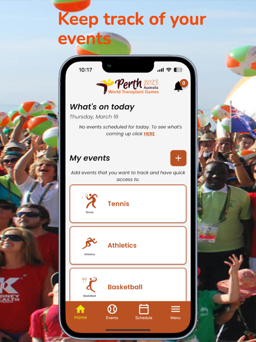 The official World Transplant Games event app for 2023! It gives you the ability to get quick access to all event information right at your fingertips. It can also help with storing your check in QR codes as a participant. The app is even translatable to your required language.