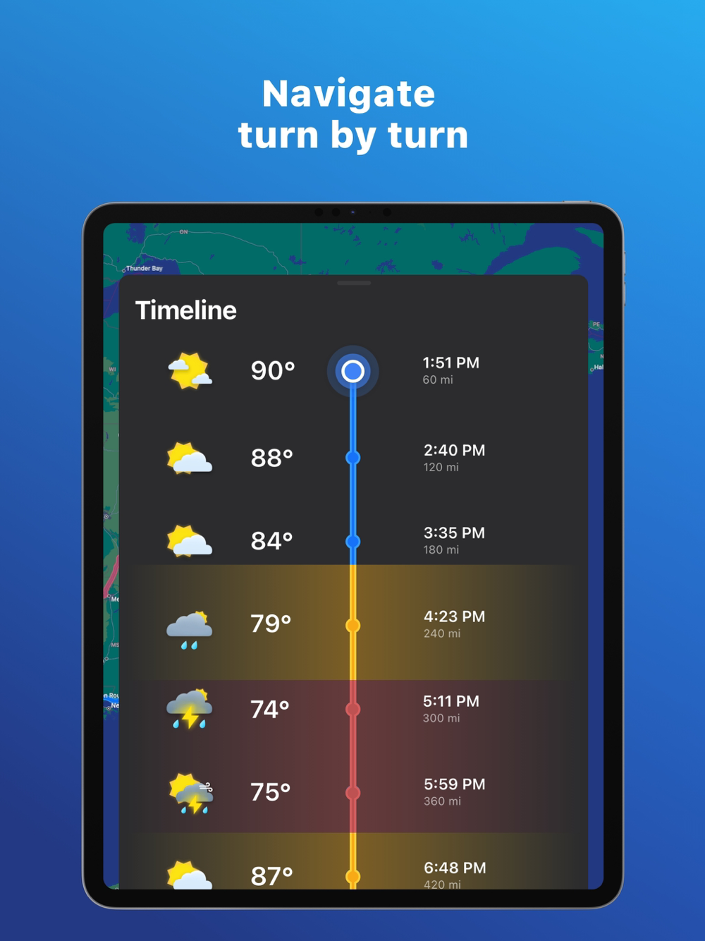 Introducing the ultimate car Weather Navigation app with the revolutionary weather routing feature.