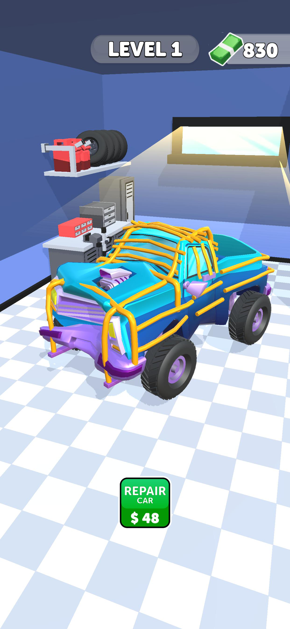 Start your journey from the garage and destroy all obstacles. Comeback to garage again to repair and upgrade your car.