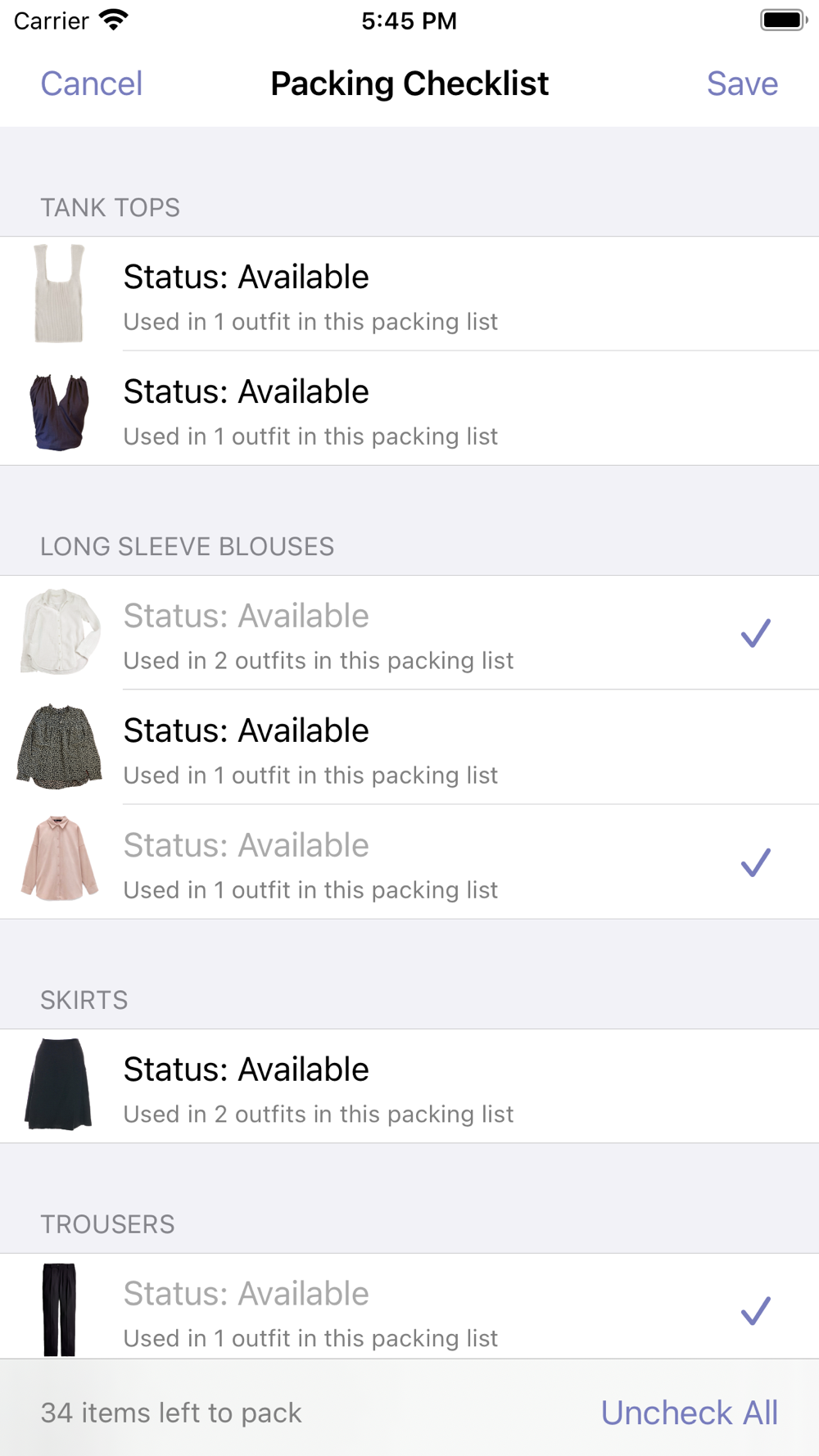 • PACKING LISTS: add whole outfits, plan how you'll pack ahead of time, generate printable checklists and infographics