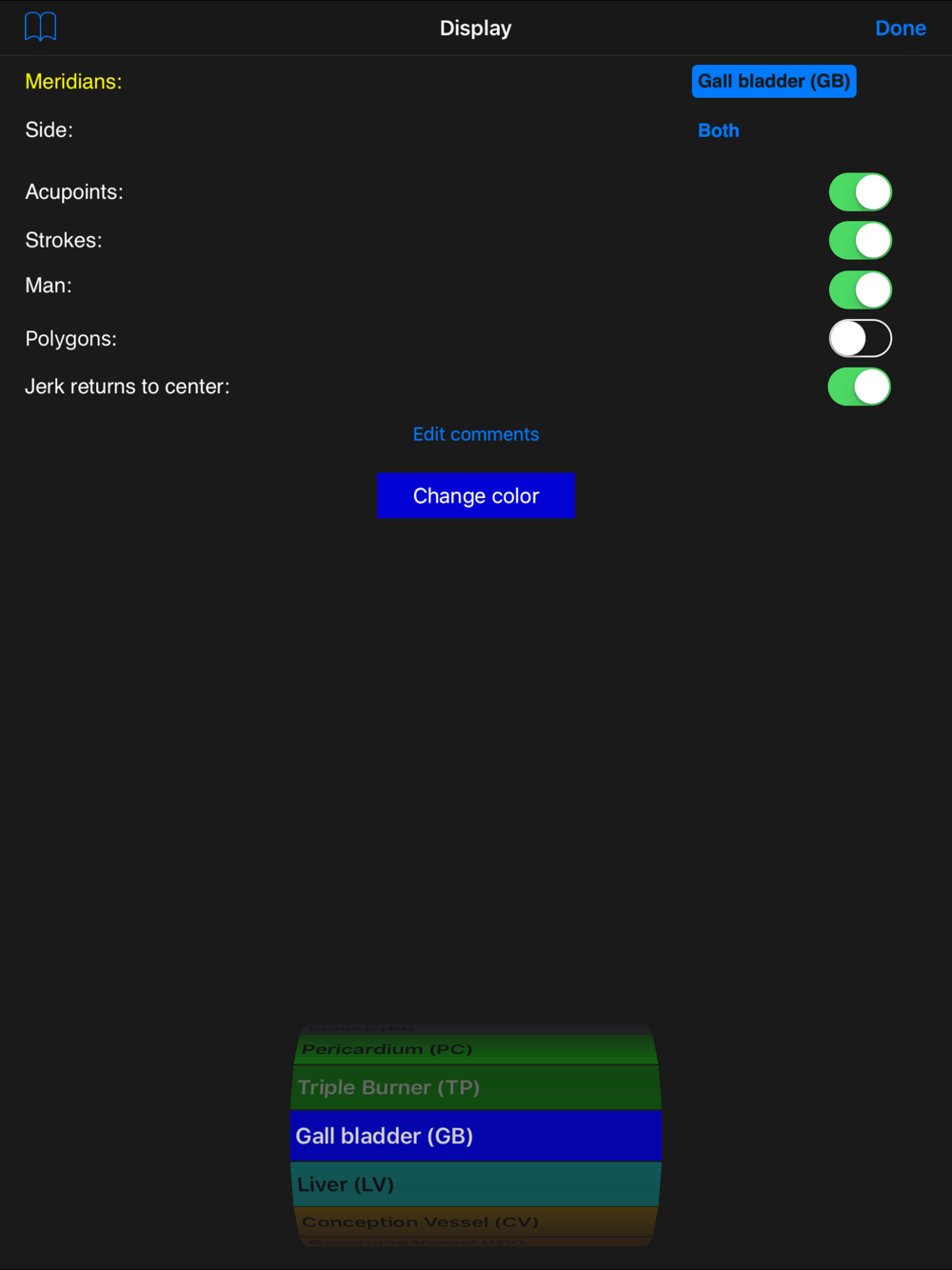 The version 1.3 is compatible with iOS 7 and allows to comment acupoints and send comments to another device