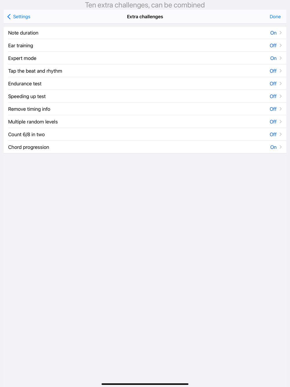 - Practice mode: listen or tap along while the rhythm is played.
