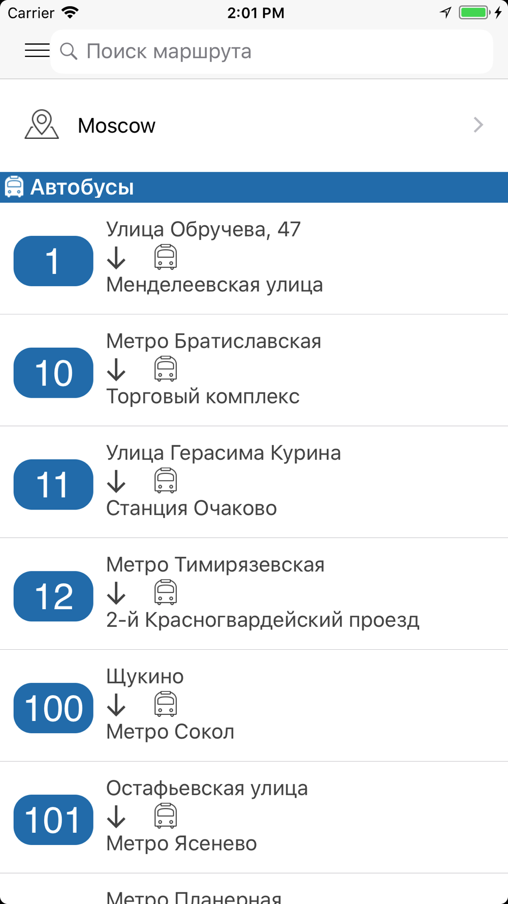 Удобный поиск по маршрутам и остановкам.