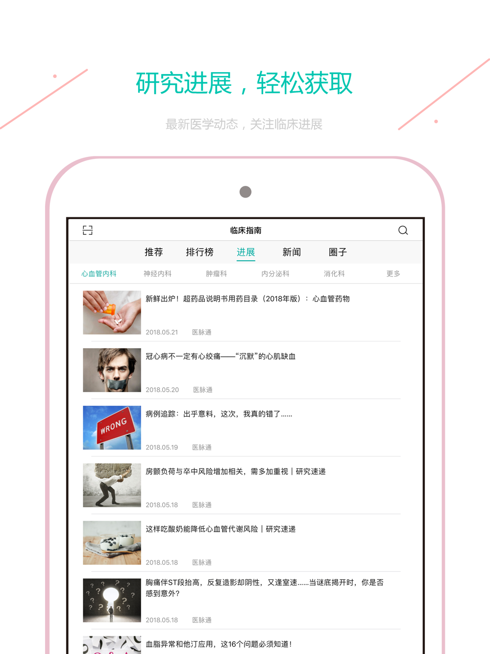 医学资讯 :资讯板块有来自SCI期刊,medscape,柳叶刀(Lancet),新英格兰医学杂志(NEJM),美国医学会杂志(JAMA)的新鲜医学动态,关注学科专业发展;
