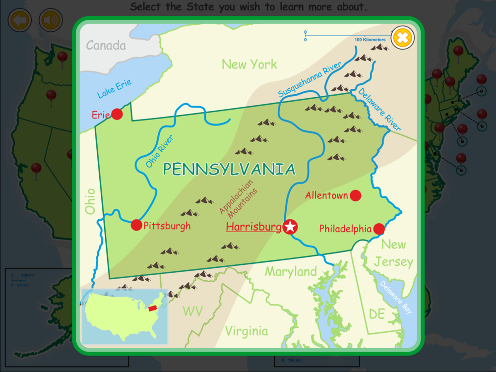 Award winning Know Your USA is perfect for children to learn the States, State Capitals, Major Cities, Mountains, Rivers and Lakes of the United States. You can Explore the United States and take a Quiz on each topic and test your knowledge and see who can get the highest score.