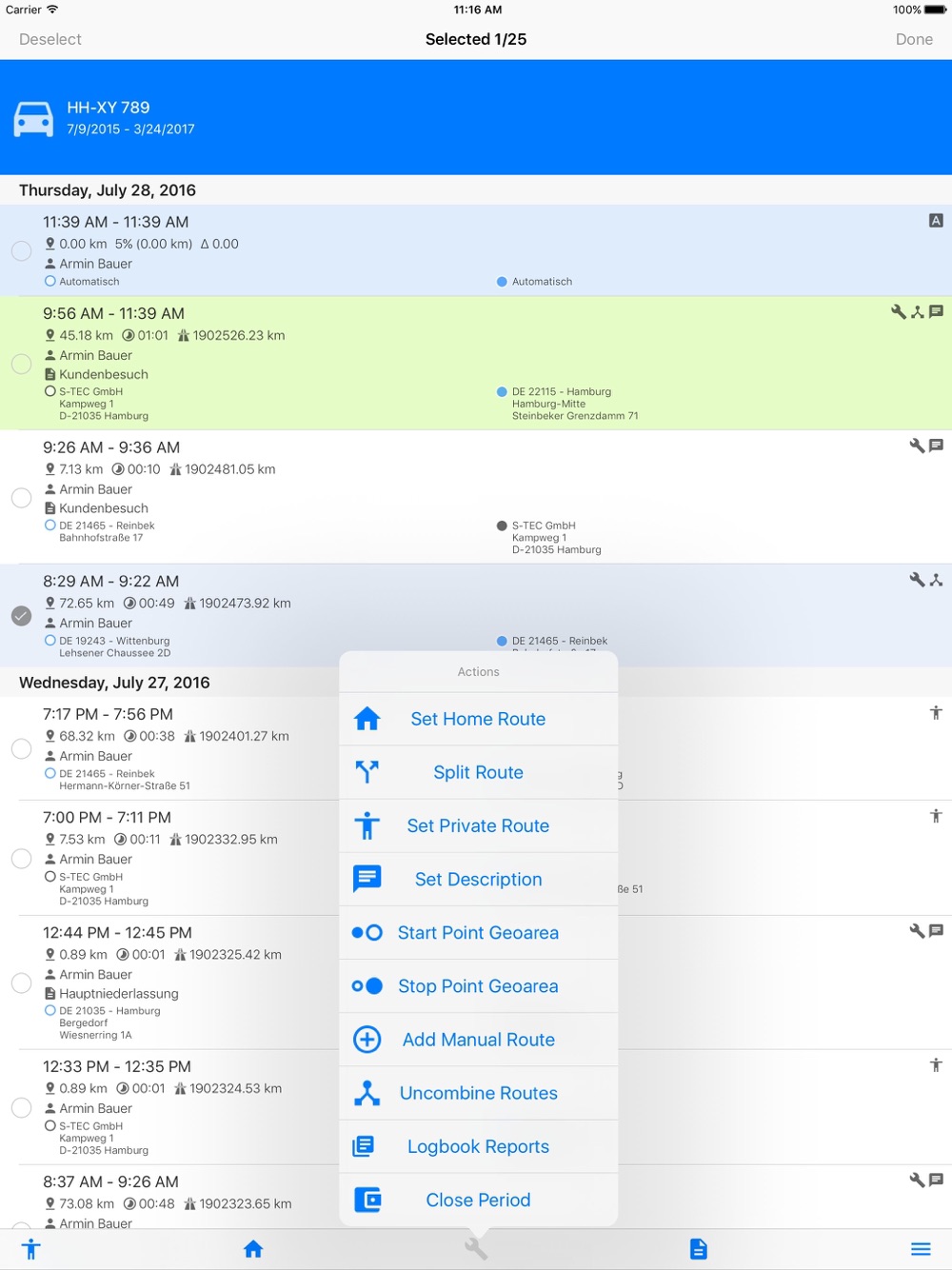 In this way, you are able to effortlessly keep a logbook in a timely manner, as requested by the tax office.