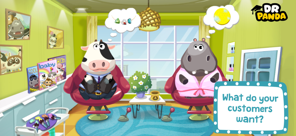 It’s time to let out your inner stylist in Dr. Panda Beauty Salon! You can paint faces and nails, make necklaces, dress-up different customers and even pluck nose hairs with a cute cast of animal friends in over 11 different minigames.