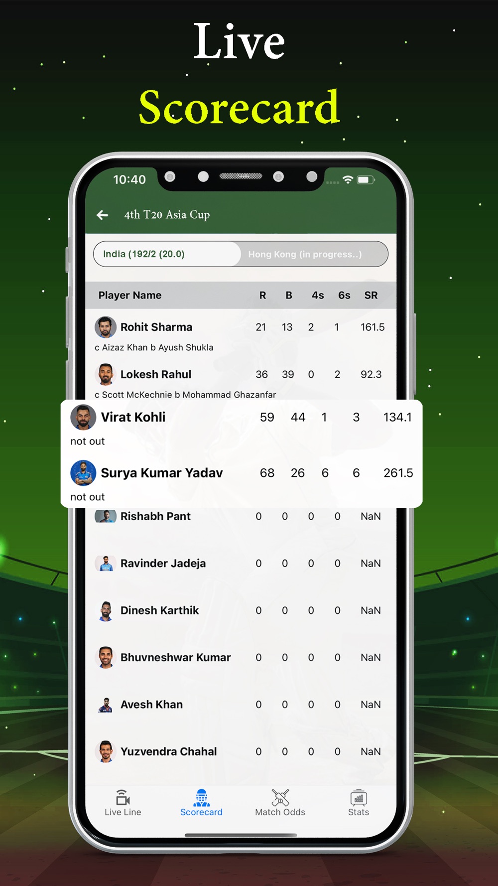 - You will get to know both teams Batsmen and Bowlers live stats.