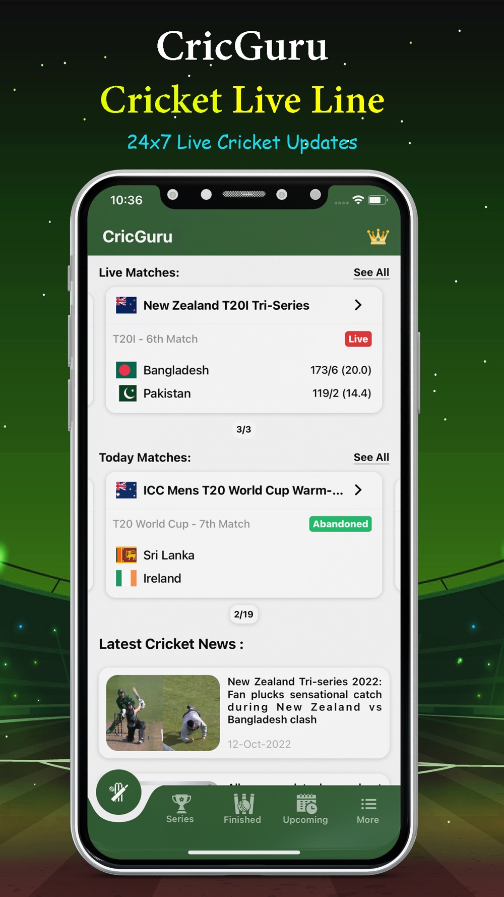 CricGuru – Cricket Live Line gives you an unmatched and unique experience with its lighting fast live cricket score feature.