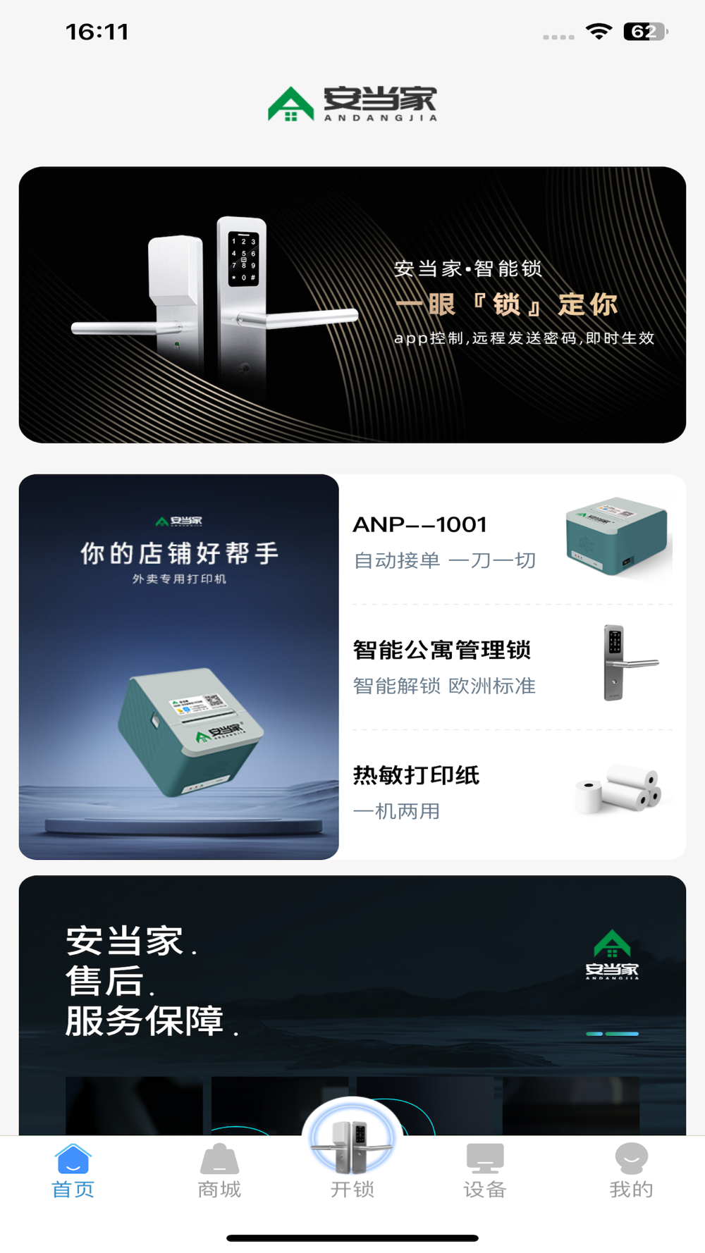 安当家一个全功能,全方位,多场景的物联网应用平台,提供智能锁,票据打印机,电子监控等一站式服务。