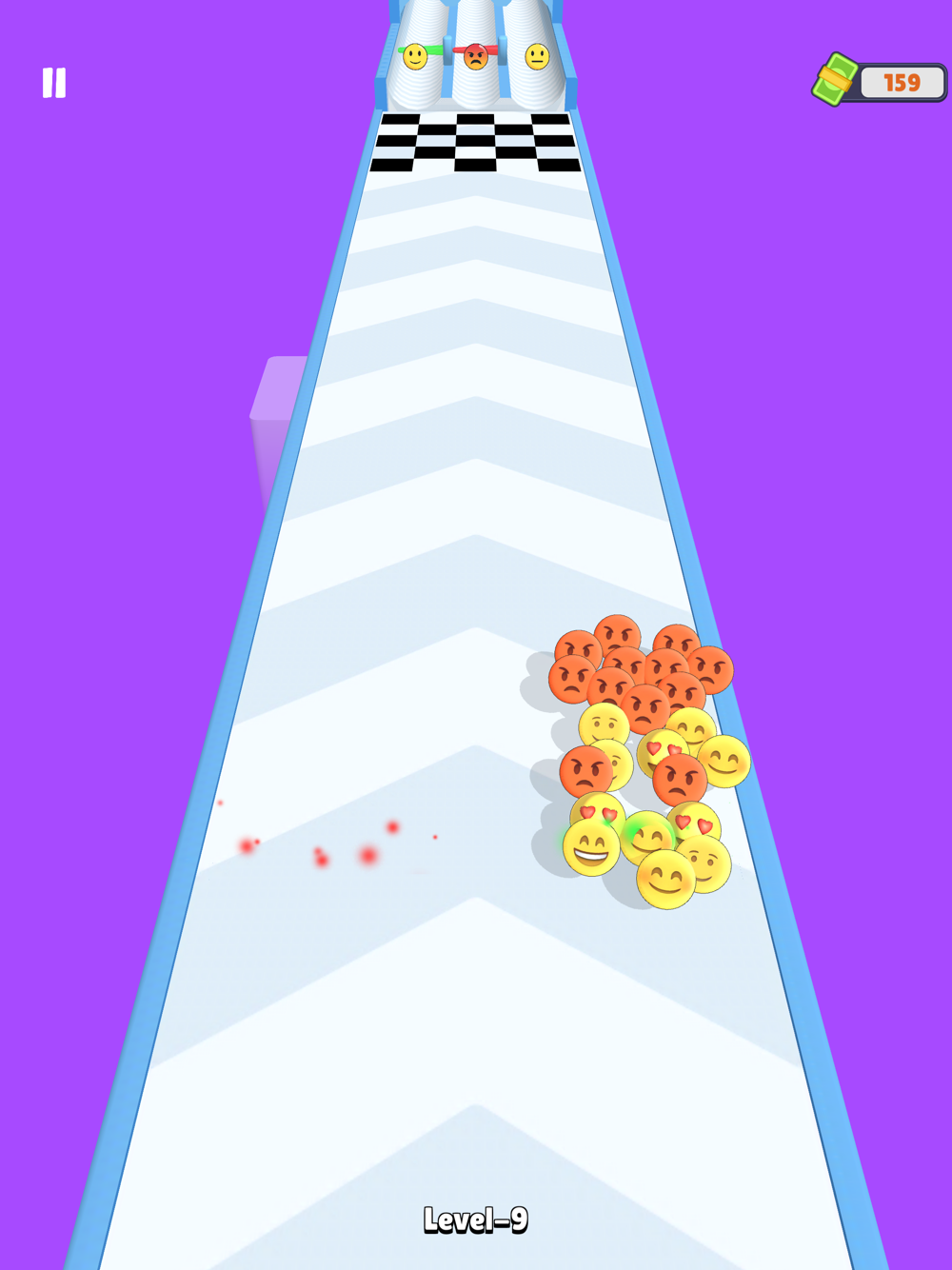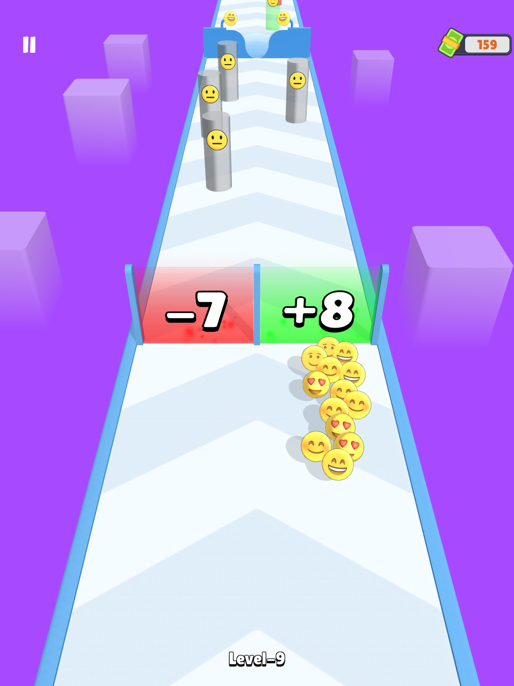 Increase the number of emojis by going through the doors, make the emojis happy and reach the finish with the maximum number of happy emojis!