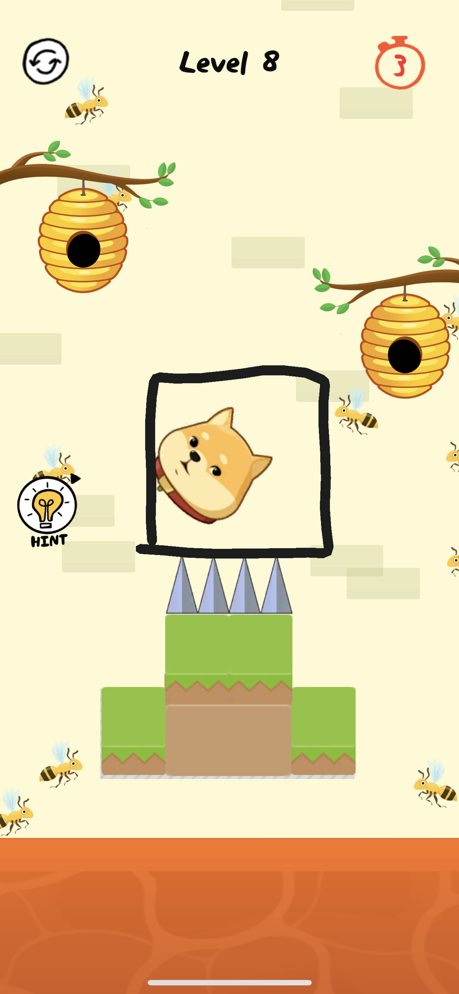 Save The Dog is a casual puzzle game. You draw lines with your fingers to create walls that protect the dog from attacks by bees in the hive. You need to protect the dog with the painted wall for 10 seconds during the attack of the bees, hold on and you will win the game. Use your brain to save the doge.