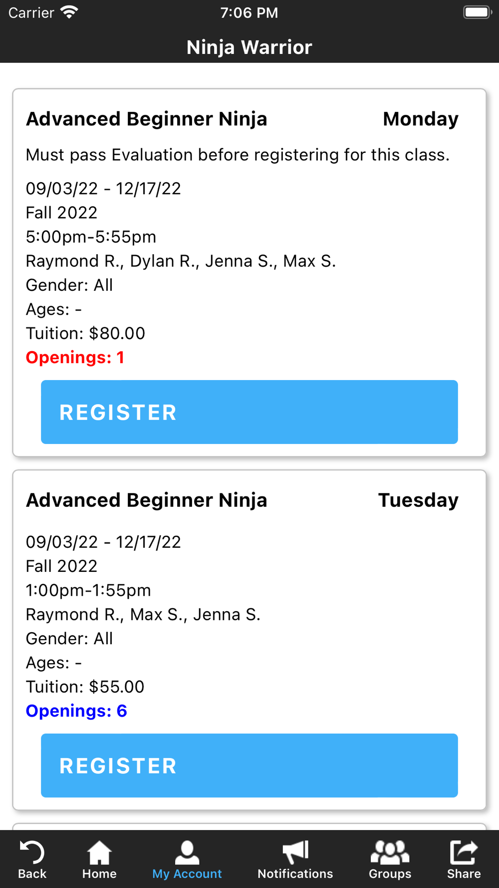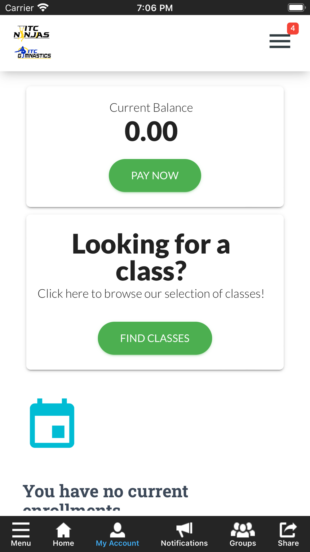 The Illumination Training Center app allows you to manage your account with ease, register for classes, parties, and special events. You'll also receive important notifications about class changes, closings, registration openings, special announcements, and upcoming events.
