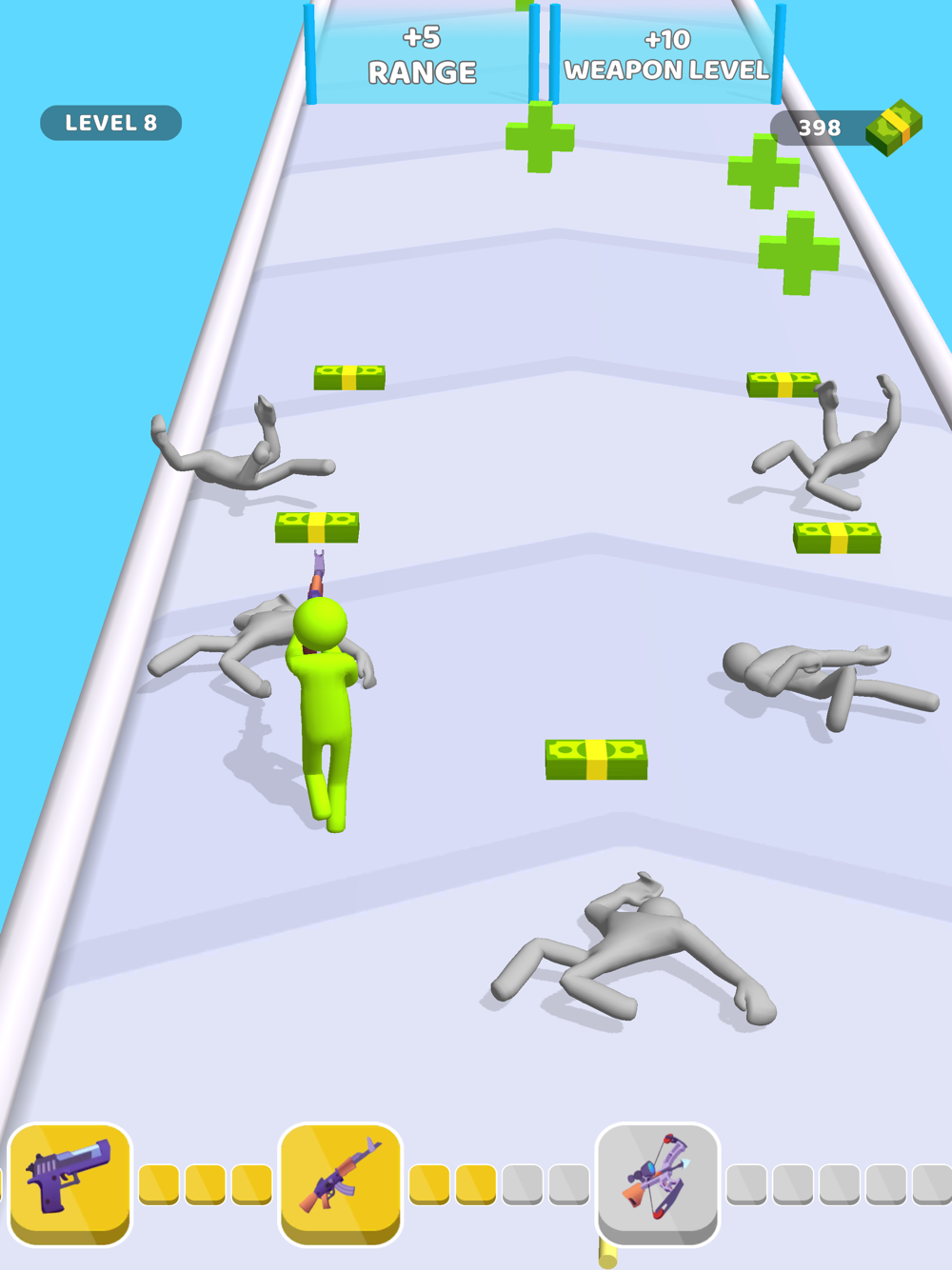 Upgrade your weapon and destroy your enemies by collecting boosters in this adventure..