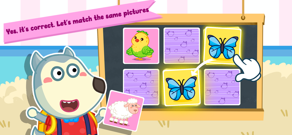 Lucy and Wolfoo will play with you, teach you many lessons of basic math, shape and color, fruits and animals. Let's have fun with these cute characters, especially kindergarten, preschool. This game will help you raise logic skills, intellegent, exciting of studying, experience of basic math