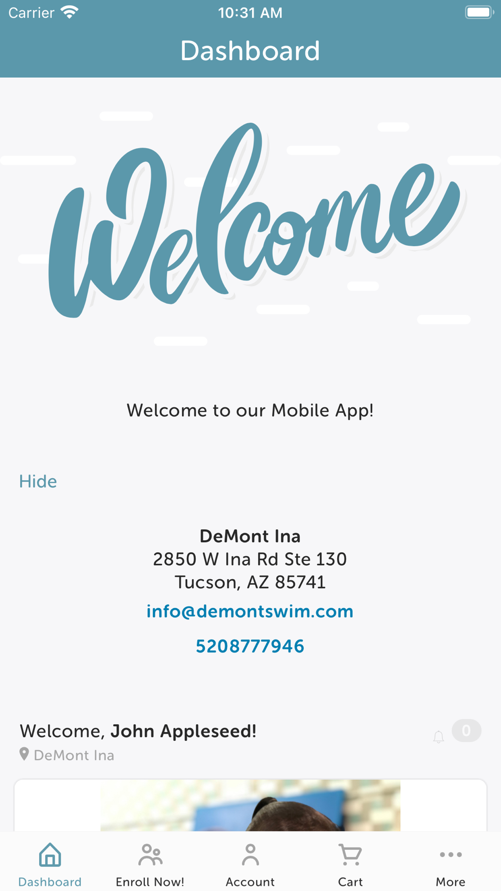 Learn to be as comfortable in water as you are on land! The award-winning DeMont Family Swim School is Tucson’s premier indoor learn-to-swim facility for children ages 3 months and up. The new DeMont Swim app allows access to the following at your fingertips: