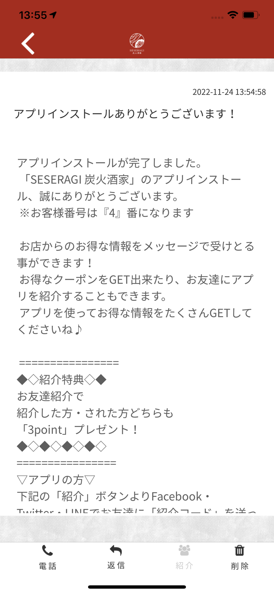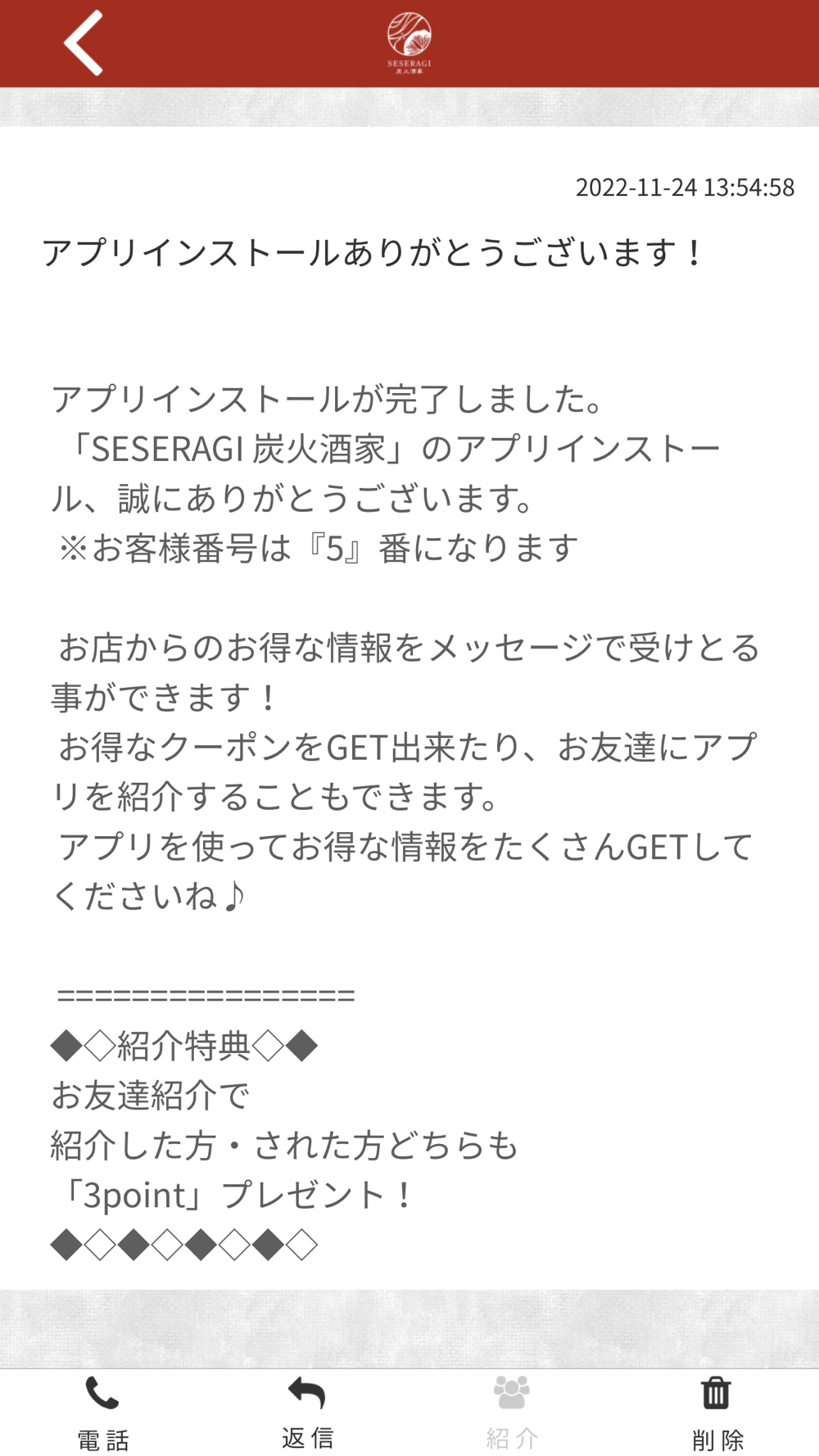 SESERAGIのアプリをSNSを通じてお友達に紹介する事ができます。