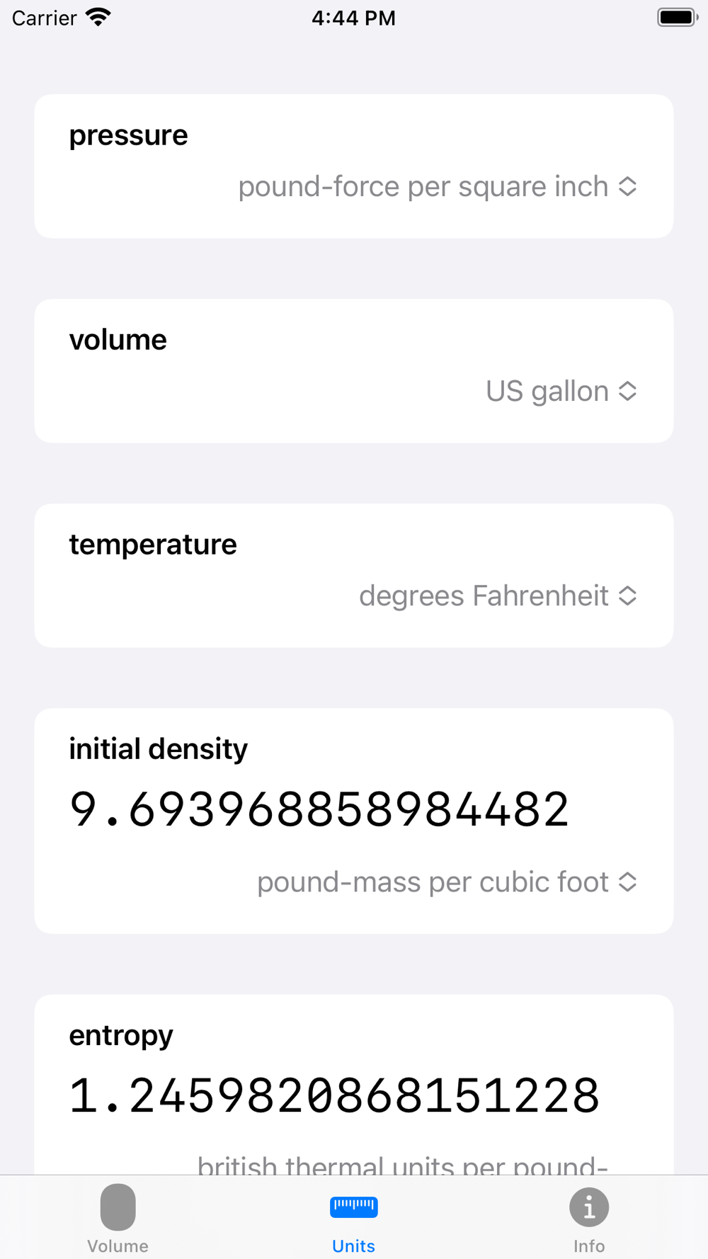 Calculating accumulator sizes using the conventional gas law for isothermal and adiabatic expansion of nitrogen gas gives inaccurate numbers at high pressure. This app takes advantage of work published in the Journal of Physical and Chemical Reference Data to perform accumulator sizing calculations with very high accuracy, for both isothermal and adiabatic conditions, expansion and contraction.