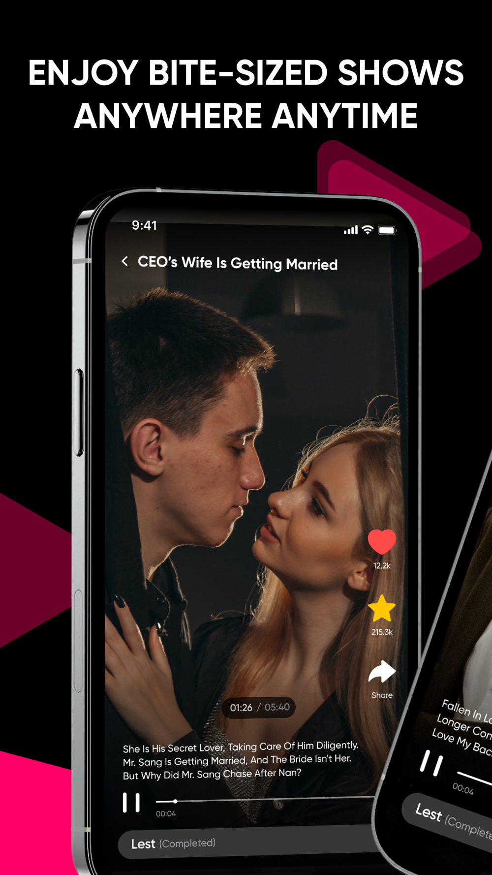 LoveShots - designed for vertical screen viewing, the ultimate app for lovers of short, snappy dramas. With each episode lasting just one thrilling minute, it is easy for you to watch on the go. You'll be hooked on the latest tales from the world, such as modern CEOs, vengeance, thrillers, time-travel, comedy, and more. Whatever trending genre you're looking for, LoveShots has got you covered.