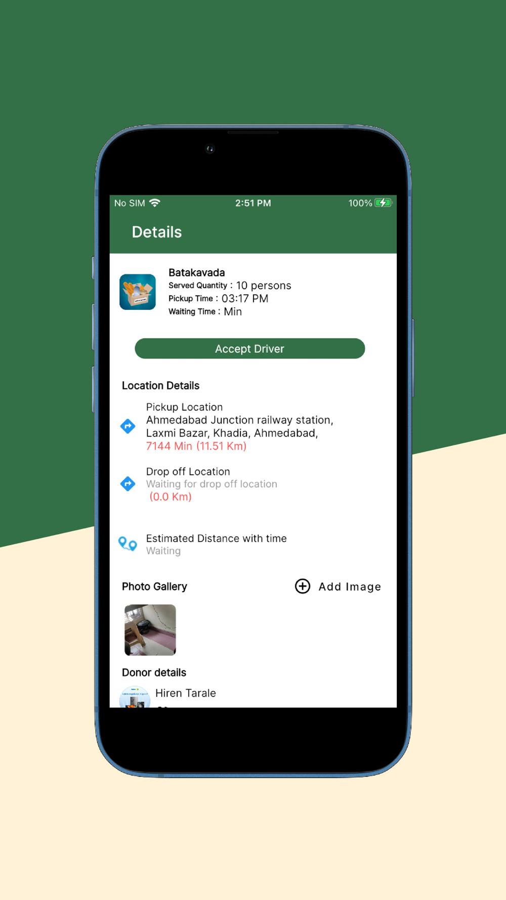 Real-time tracking: Stay informed about the status of your food donation with our live tracking feature. You'll know exactly when your donation has been picked up and delivered.