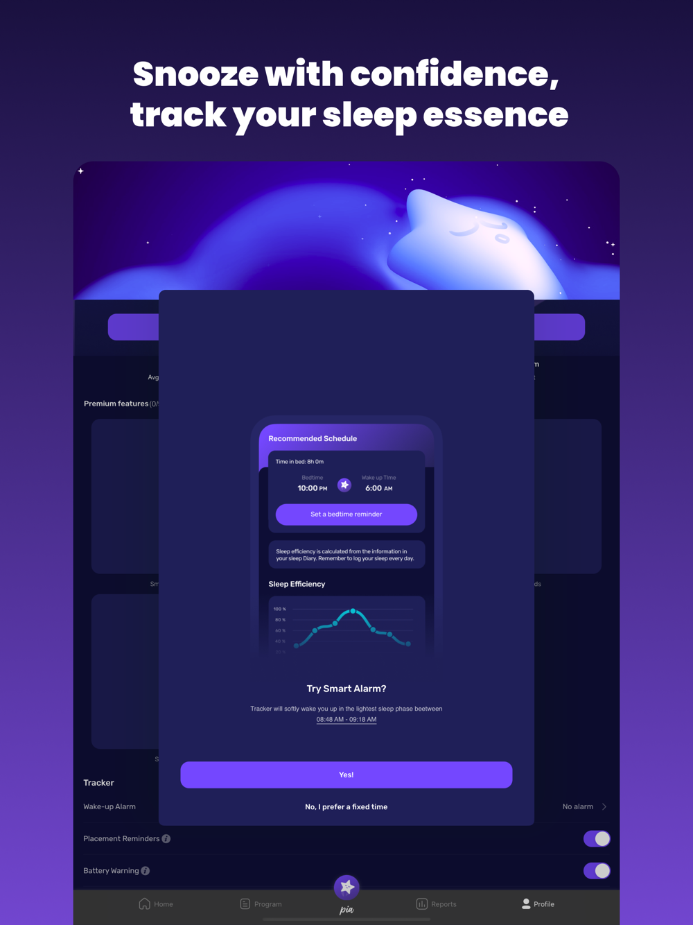 Start with a free trial to unlock premium features, including advanced sleep insights, snore tracking, and more. Manage subscriptions through iTunes anytime.