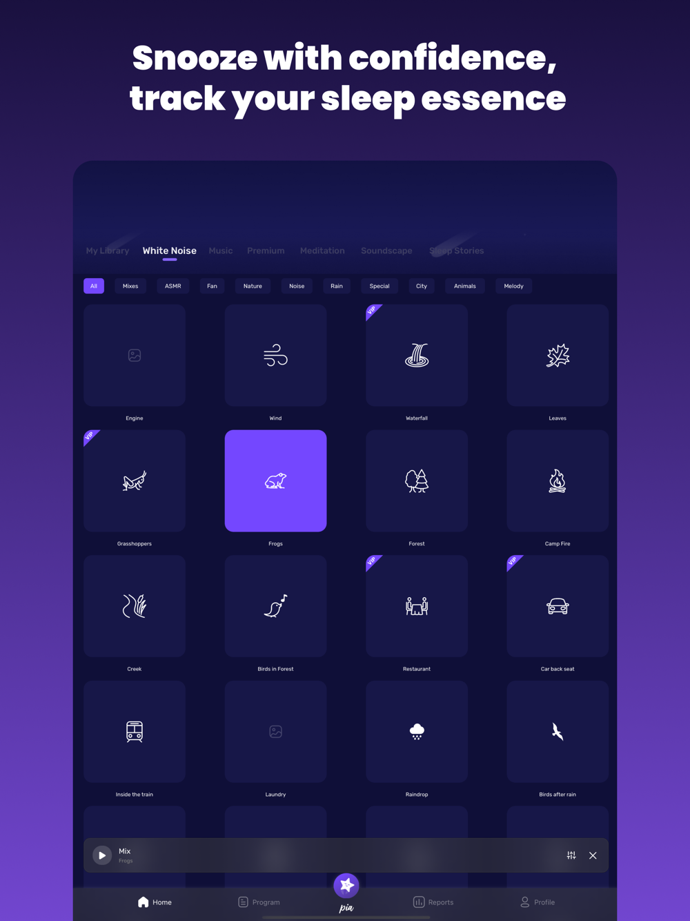 Drift off to over 200 soothing sounds, healing frequencies, and guided meditations tailored to your needs.