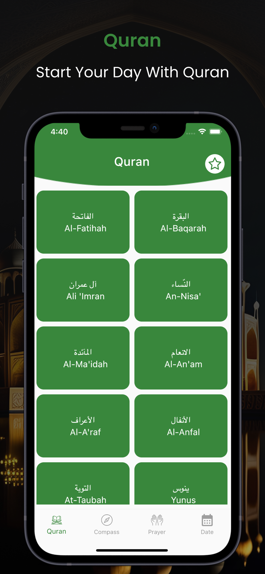 Complete Quranic Text: The app contains the entire text of the Quran, organized into chapters known as Surahs, and verses known as Ayahs. Users can navigate through the app to access specific Surahs or search for particular verses.